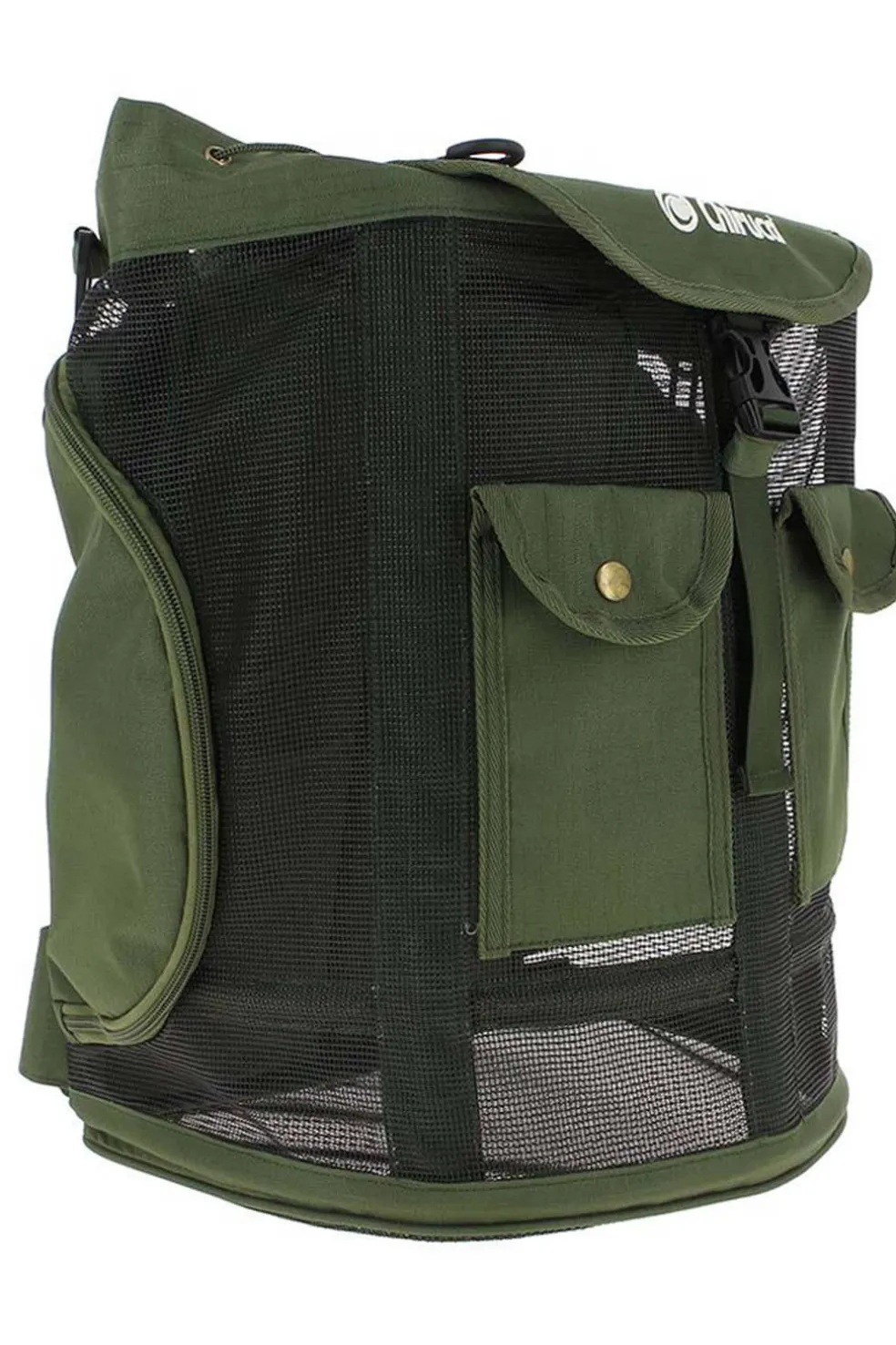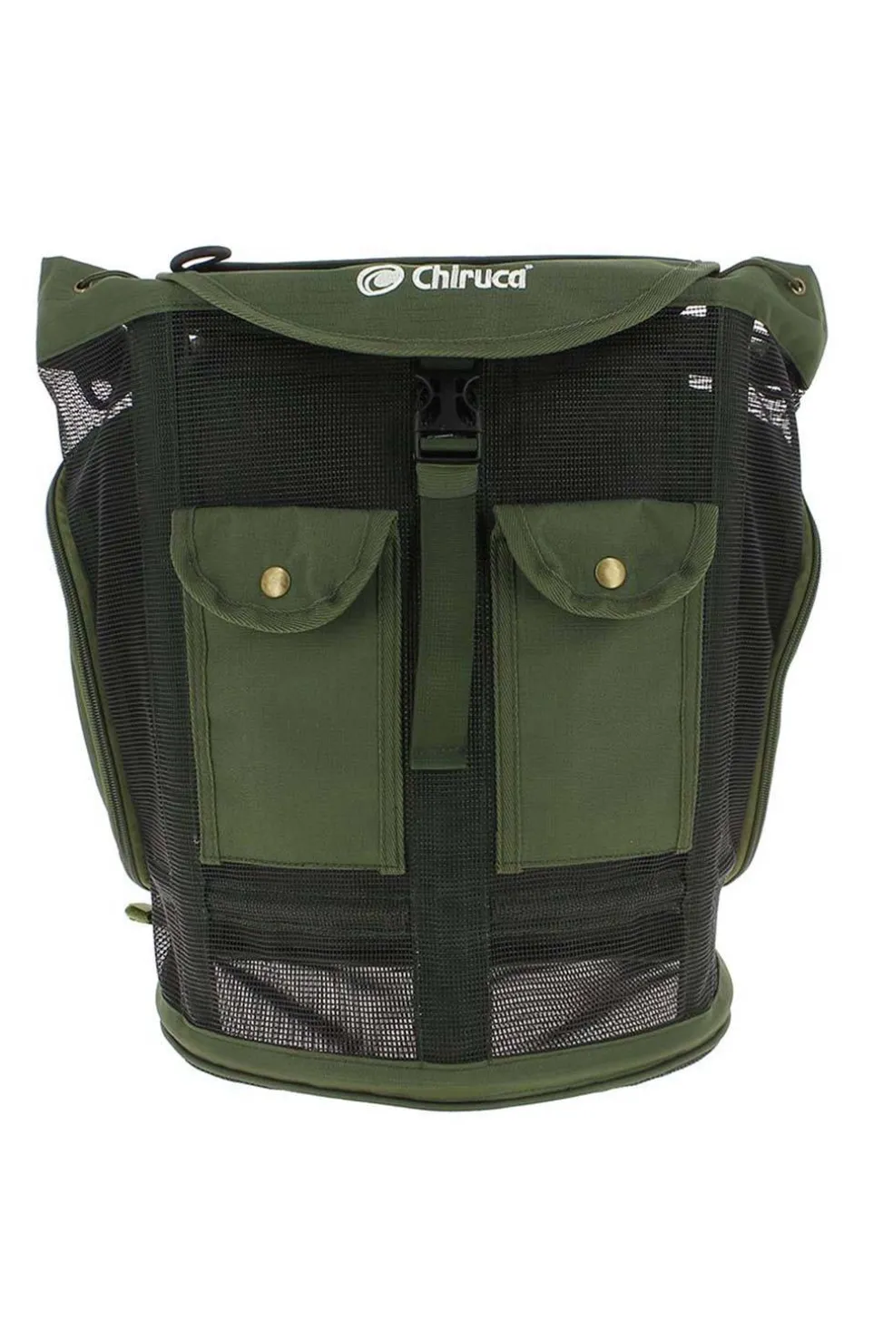 Mochila diseñada para la recolección de setas y hongos. Cuerpo compuesto de rejilla que permite la dispersión de las esporas (durante la recolección). Uso como mochila normal o como bandolera. Ajustadores en el pecho. Bolsillos laterales. Portadocumentos y portanavajas. Peso 1300 g.