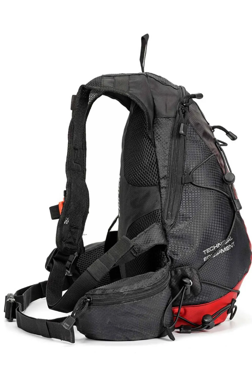 Esta mochila, diseñada con una forma envolvente, ofrece estabilidad y comodidad. Cuenta con correas de compresión, un bolsillo externo frontal y dos departamentos laterales. Su asa de transporte facilita el manejo, mientras que el foam con rejilla transpirable en la espalda asegura ventilación. Incluye un elástico portamaterial central, superior e inferior, así como correas de sujeción en pecho (con silbato de emergencia) y cintura para un ajuste seguro. Ideal para tus aventuras al aire libre. Capacidad 11 litros