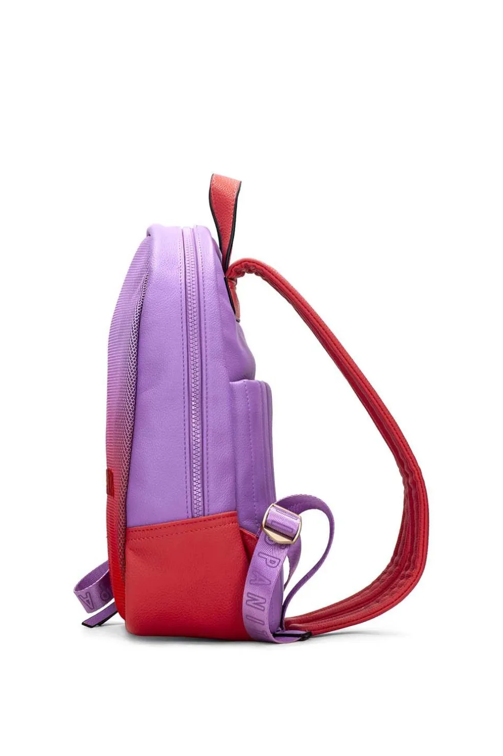 Mochila espaciosa elaborada en tejido de rejilla con forro interior para que no transparente. Dellate de nombre de la marca bordado en hilo. Cuenta con un compartimento de gran capacidad y un bolsillo más pequeño en su interior.