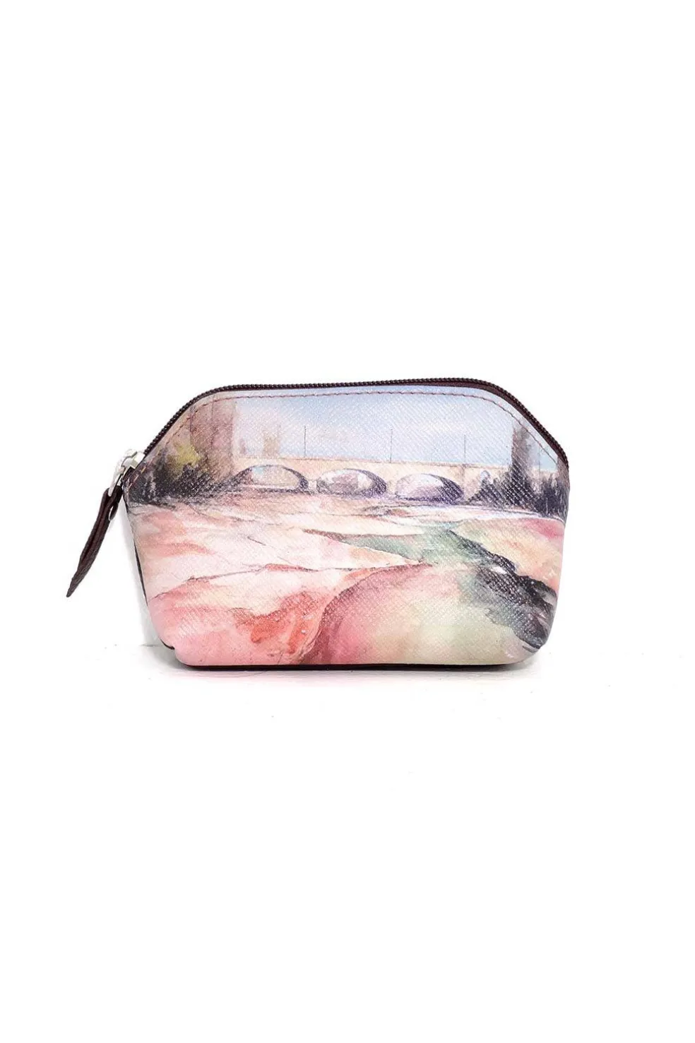 Monedero de piel natural con print exclusivo del Río Trueba de Medina de Pomar, edición limitada y fabricado en España por maestros artesanos.
