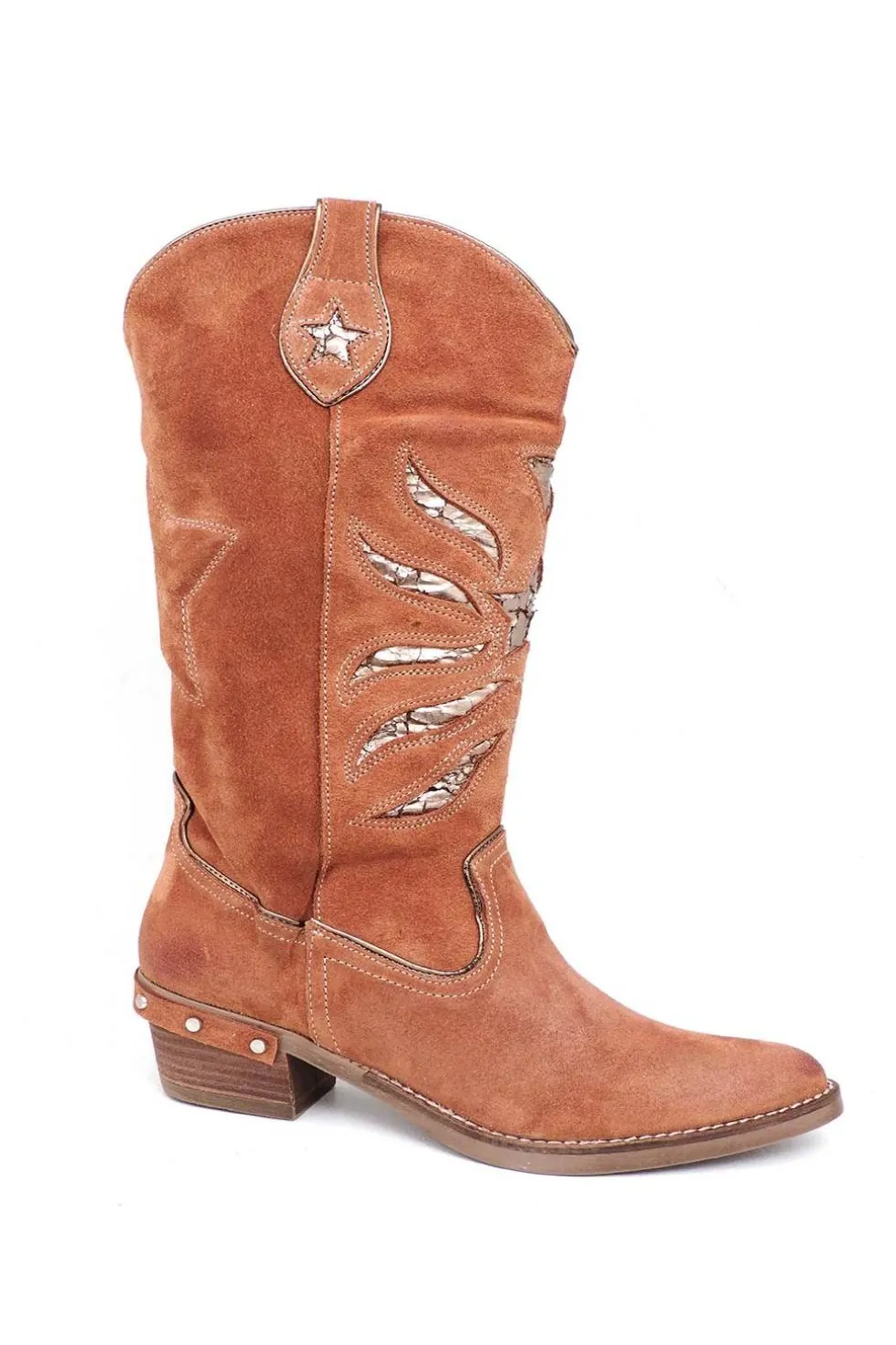 Tacón campero de 5 cm adornado con tachuelas.