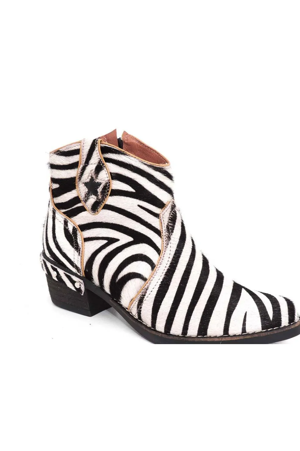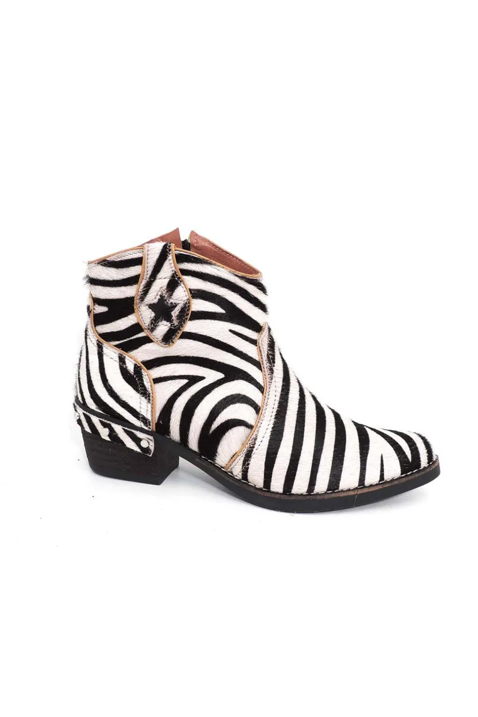 Tacón estilo campero de 5 cm adornado con tachuelas.