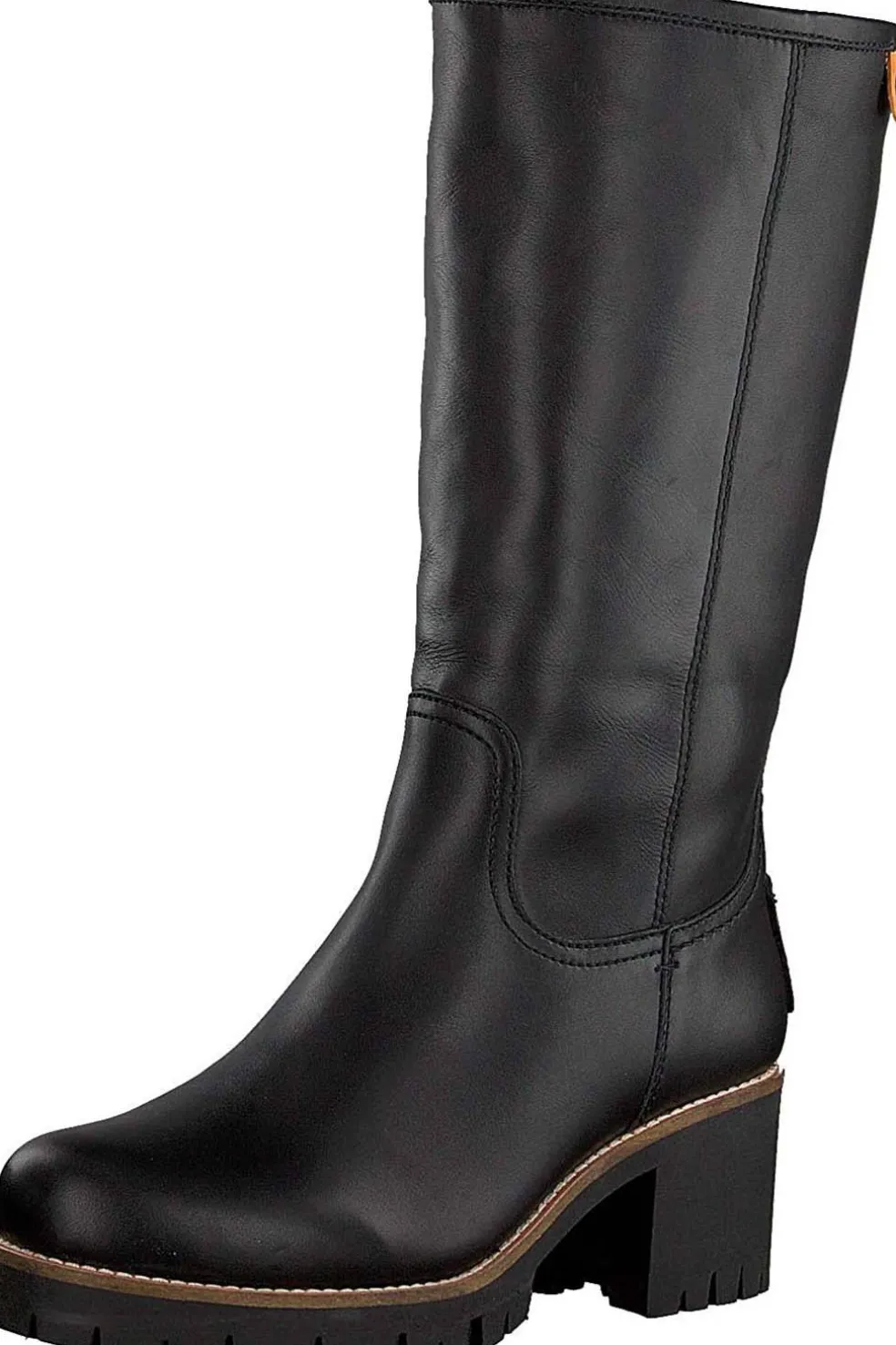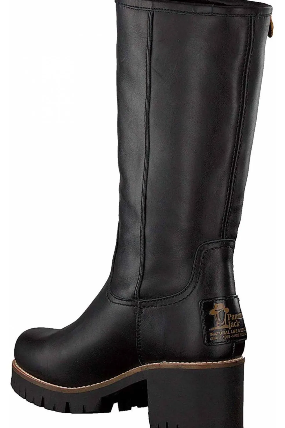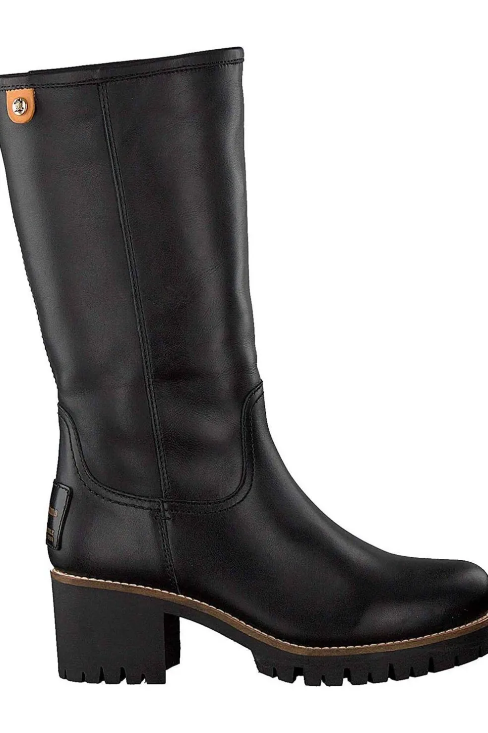 Bota Panama Jack de mujer con tacón. Con piel napa negro y forro interior de pelo cálido y plantilla anatómica. Suela de tpu resistente. Hecho en España.