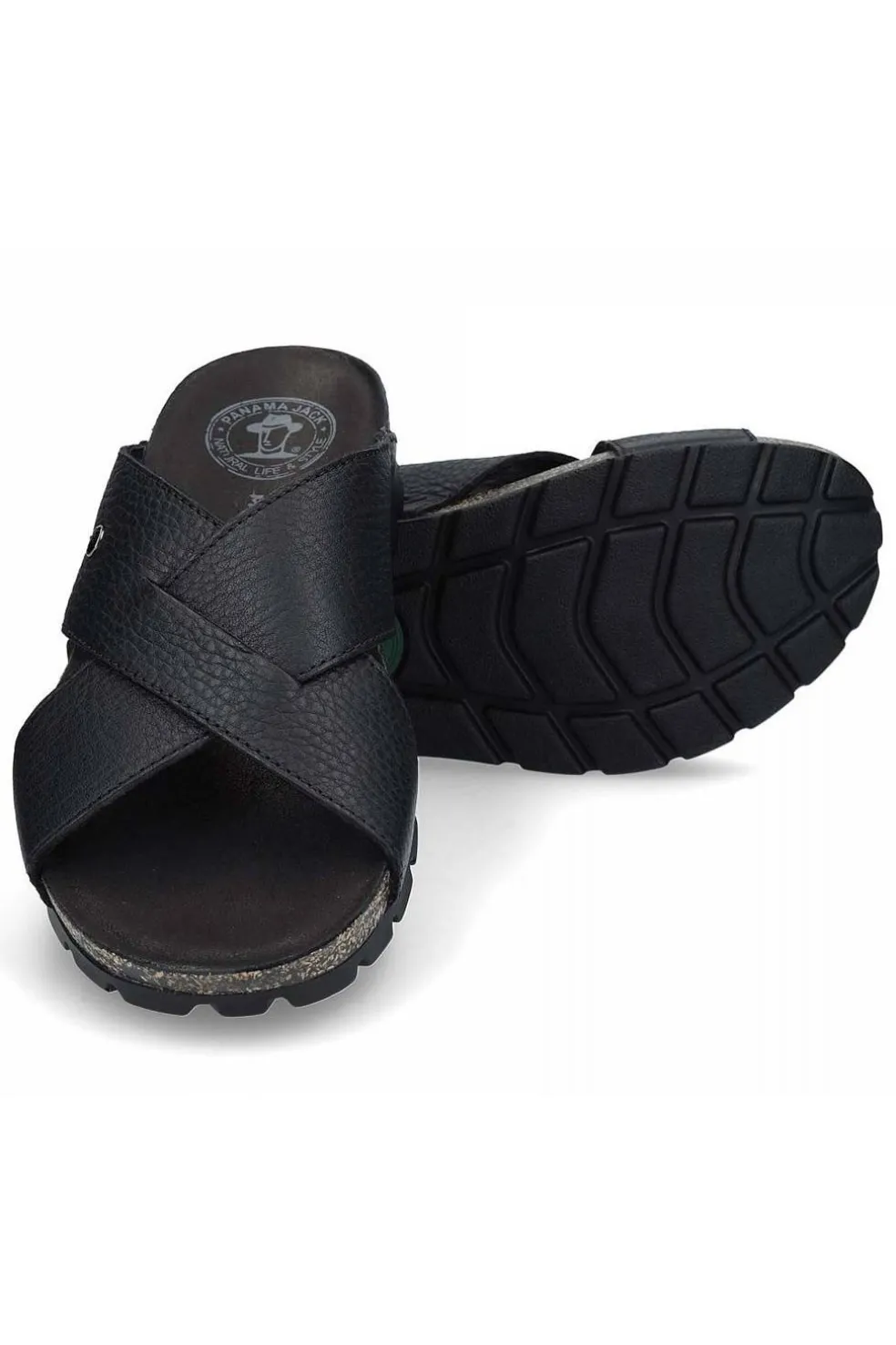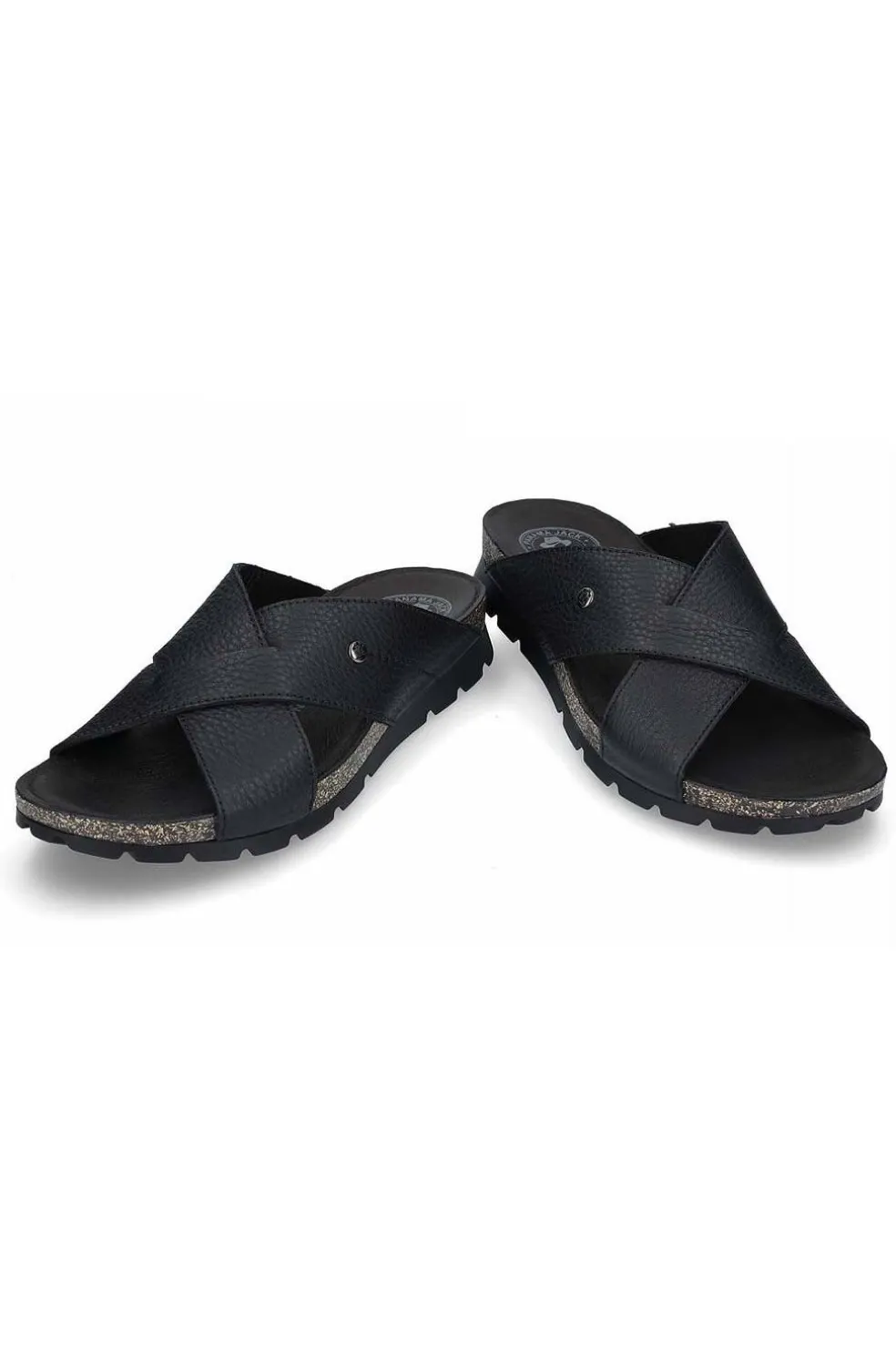 Sandalia de hombre, realizada en piel napa y forro interior de piel. Planta anatómica forrada de piel. Suela de corcho natural ligera.