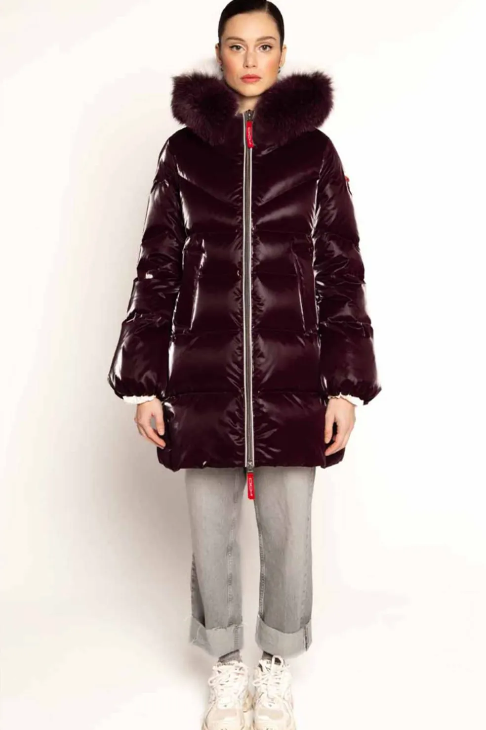 Parka de mujer de la marca Dichi, confeccionada con relleno de pluma natural que garantiza abrigo y comodidad sin perder ligereza. Presenta un atractivo acabado en color burdeos metalizado, sofisticado y moderno. Incluye gorro con pelo natural, que aporta estilo y protección adicional frente al frío. Sus bolsillos laterales con corchetes resultan prácticos y funcionales, perfectos para llevar lo esencial o resguardar las manos. Una prenda elegante y cálida, ideal para lucir en invierno con un toque distintivo.