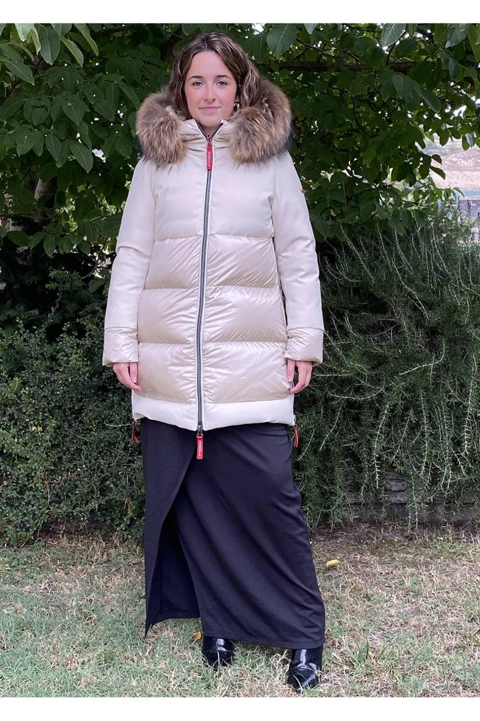 La Lorea 07 de Dichi es una parka sofisticada y moderna que combina estilo y abrigo en una sola prenda. Su diseño destaca por la parte inferior metalizada, que aporta un acabado único y actual. Incorpora capucha con pelo natural para mayor protección y un logo distintivo en el brazo, sello de autenticidad de la marca. Ideal para quienes buscan un abrigo funcional con un toque de moda exclusiva.