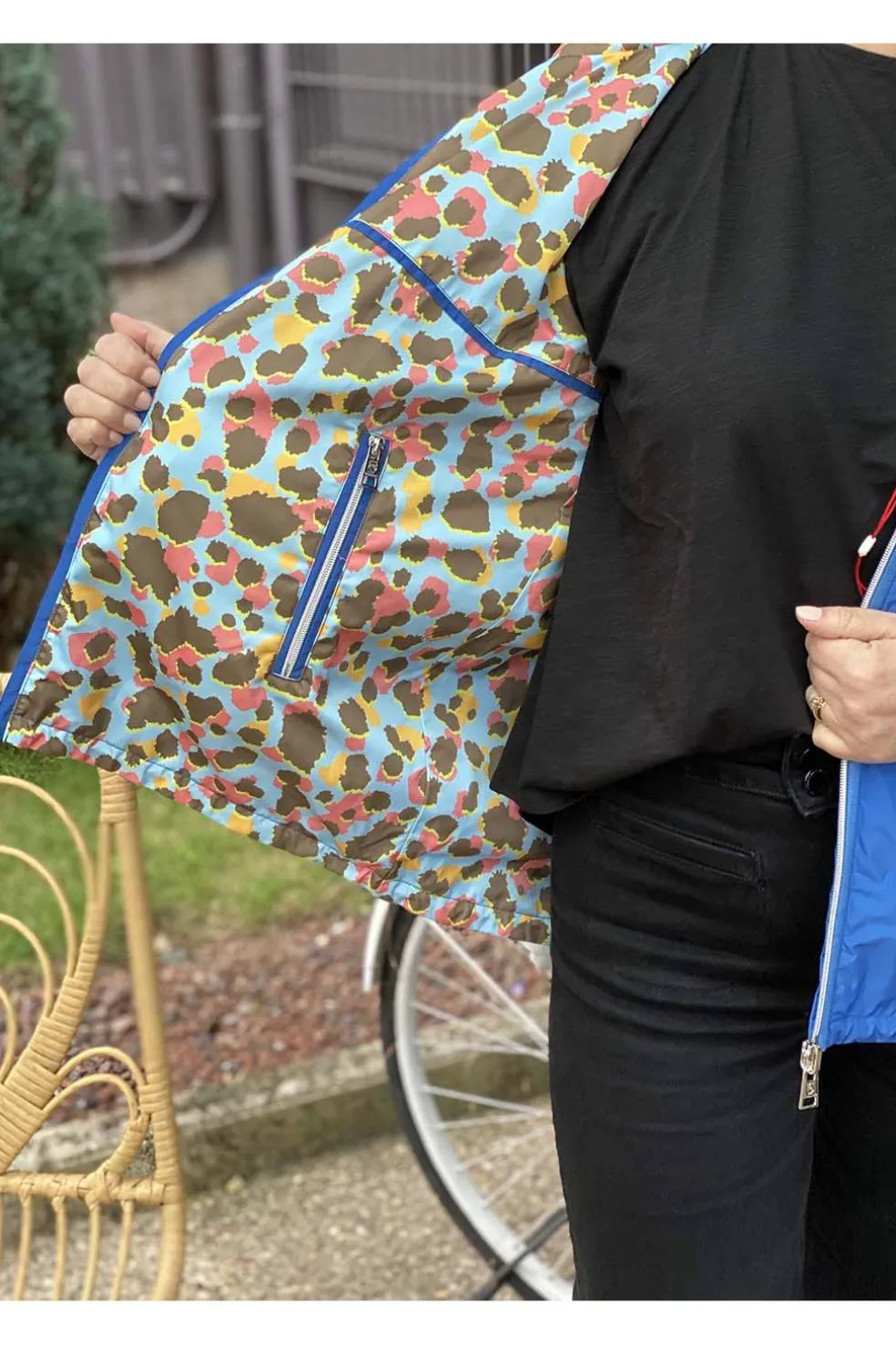 Parka de mujer de Donjaz modelo Andina reversiblepor un lado azul y por otro animalprint. Cierre de cremallera y tiene dos bolsillos laterales con cremallera en los latarales.