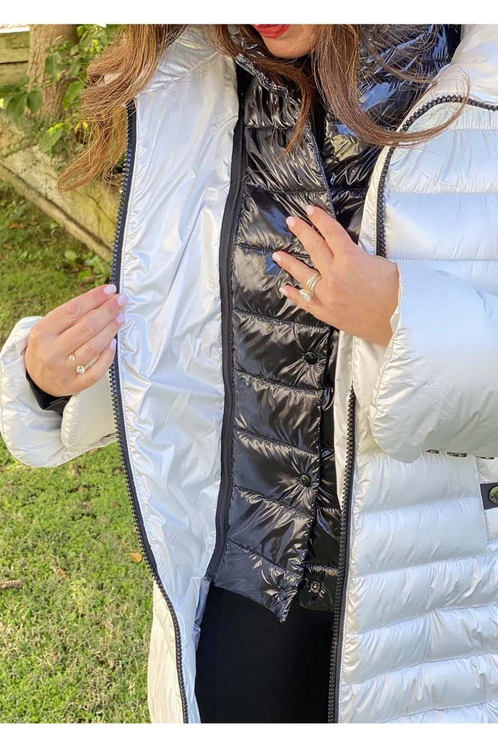 Descubre la parka Emiry de Donjaz, una prenda imprescindible para la mujer moderna. En un sofisticado color perlado, esta parka destaca por su innovador diseño que incluye un efecto chaleco negro desmontable en el interior, brindando versatilidad y estilo. Equipado con prácticos bolsillos laterales con corchetes para mantener tus pertenencias seguras, el logotipo de la marca en el brazo que añade un toque distintivo y corchetes negros en los laterales y en las mangas, la Emiry es perfecta para cualquier ocasión. Combina elegancia y funcionalidad, convirtiéndola en la elección ideal para los días fríos. ¡Hazla parte de tu colección y luce espectacular!