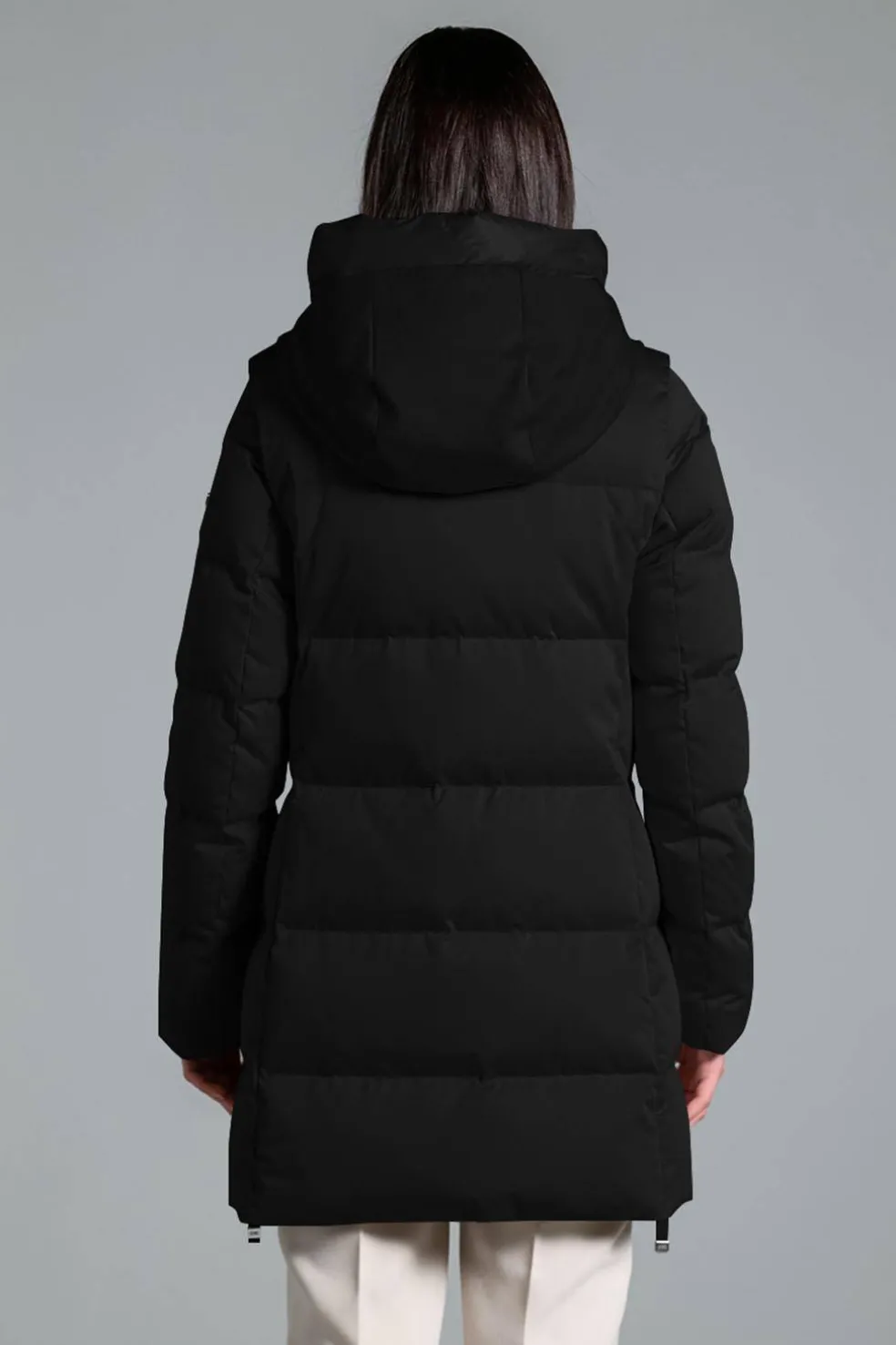 Descubre la versatilidad y el estilo de esta chaqueta de plumas negra de Duno, diseñada especialmente para la mujer moderna. Con un diseño innovador, las mangas son desmontables, permitiéndote transformarla en un elegante chaleco en cuestión de segundos. El cierre central cuenta con una cremallera resistente y corchetes que garantizan un ajuste seguro y cómodo.