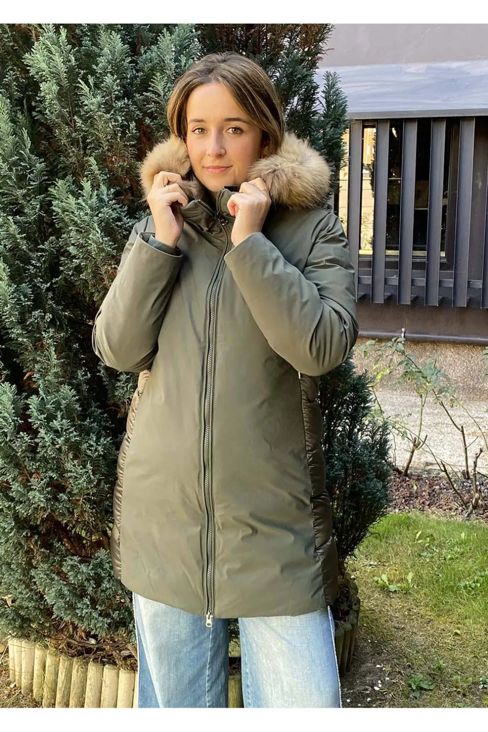 Parka Layla de mujer de Hetregó en color verde, corte entallado y tejido exterior repelente al agua.