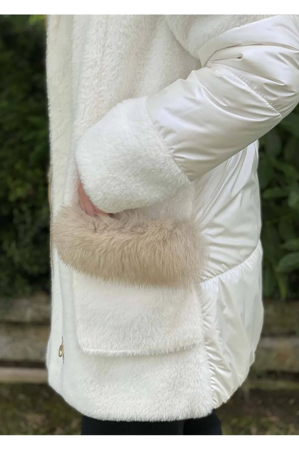 Esta elegante parka blanca de Medinapiel con detalles de pelo es la pieza perfecta para añadir un toque de glamour a tu armario. Confeccionado con materiales de alta calidad, este abrigo te mantendrá abrigado y a la moda durante los días fríos. Sus bolsillos funcionales te permiten llevar contigo tus objetos esenciales con estilo. El detalle de pelo en el cuello y los bolsillos añade un toque de sofisticación y elegancia a tu look. Ya sea para una salida casual o una ocasión especial, este abrigo blanco es la elección ideal para destacar con estilo y comodidad.