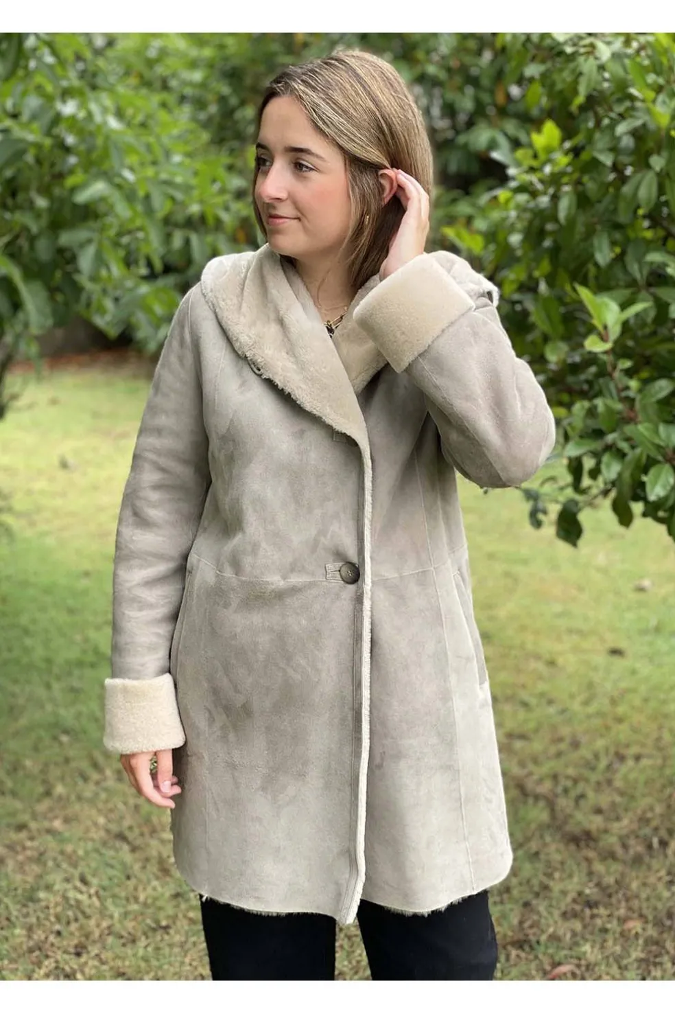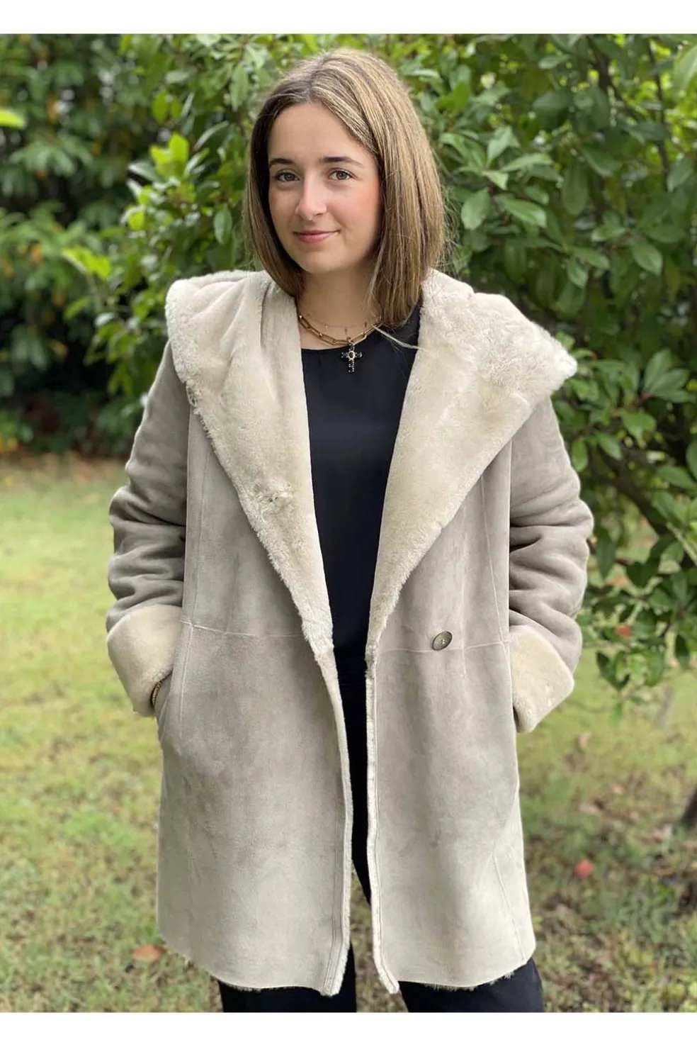 Confeccionada con piel natural de alta calidad, esta pelliza ofrece una suavidad y durabilidad excepcionales. Su diseño clásico se complementa con un cierre frontal de botones que no solo añade un toque distintivo, sino que también permite un ajuste personalizado y cómodo. Los detalles cuidadosamente pensados, como los bolsillos laterales y el forro interior suave, garantizan funcionalidad sin sacrificar el estilo. El color piedra aporta un aire moderno y versátil, fácil de combinar con diferentes atuendos, desde looks casuales hasta conjuntos más sofisticados. Cuenta con una práctica capucha que proporciona protección adicional contra el frío. Fabricada en España.