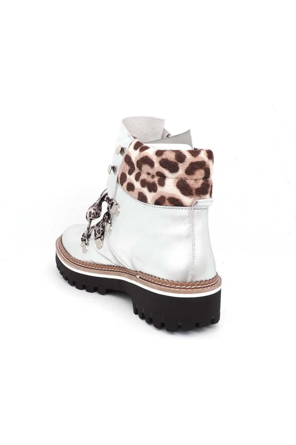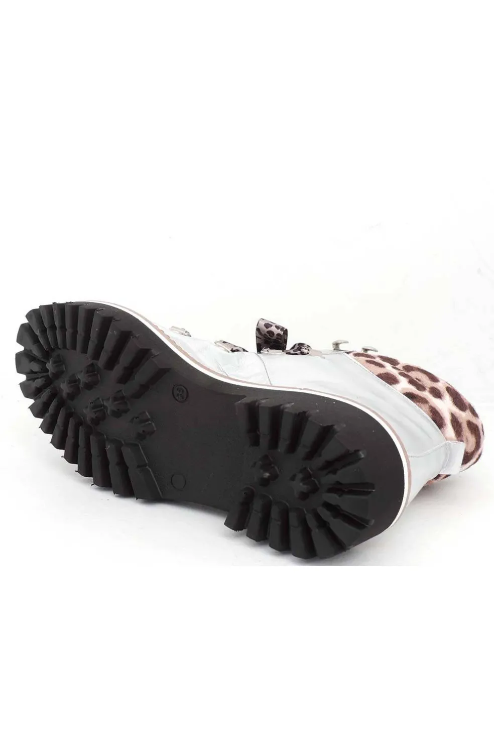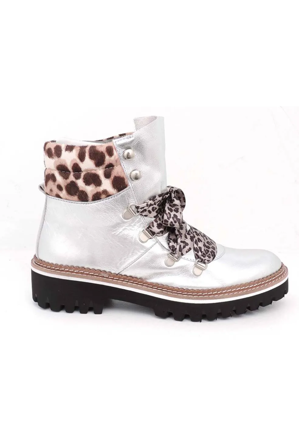 Botín de Salonissimos con cordones y detalle animal print en color metalizado.