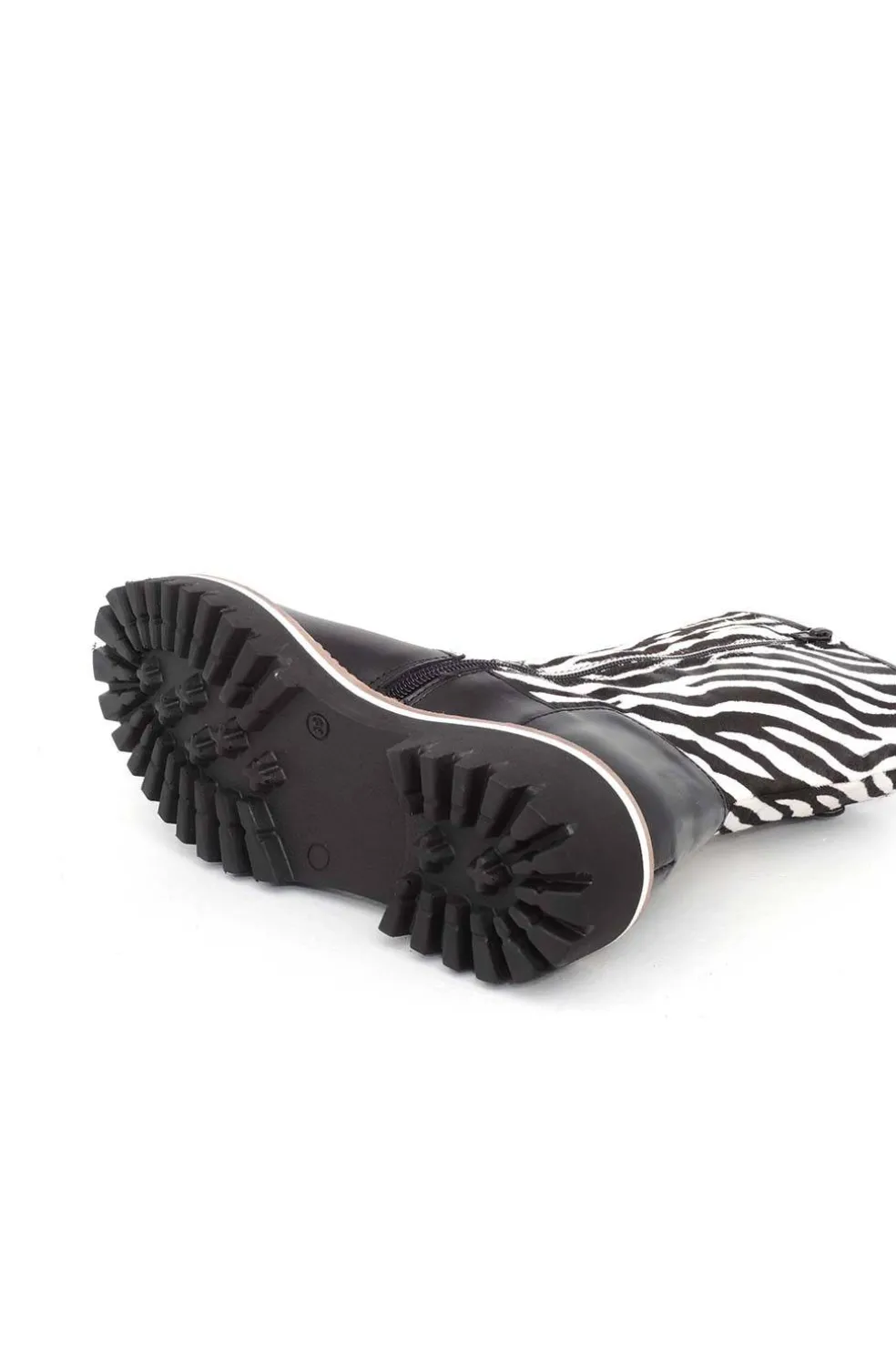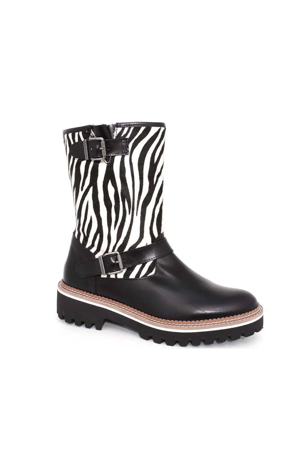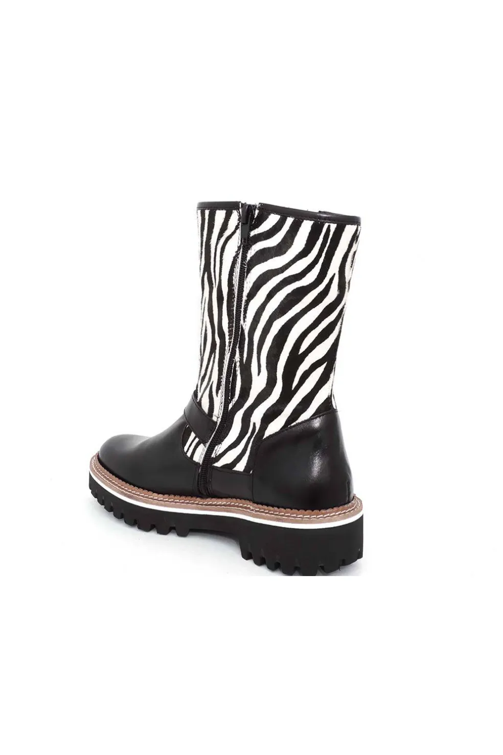 Bota de piel con estilo modernista, en animal print. Plantilla acolchada. Piso semi-rígido flexible.