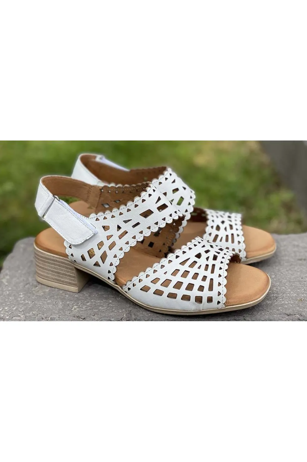 Sandalia de mujer fabricados en corte de suaves pieles, en color blanco con cierre con hebilla.
