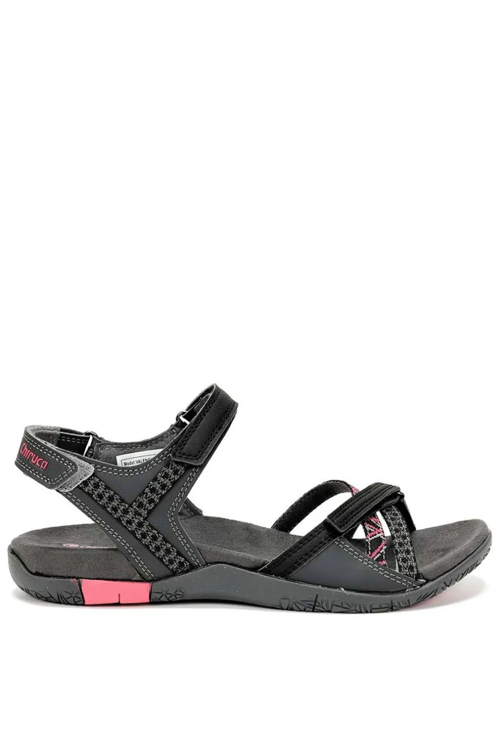 Corte sintético y textil. Cierre velcro. Entresuela EVA forrada de microfibra. Suela de goma. Peso 173 g.