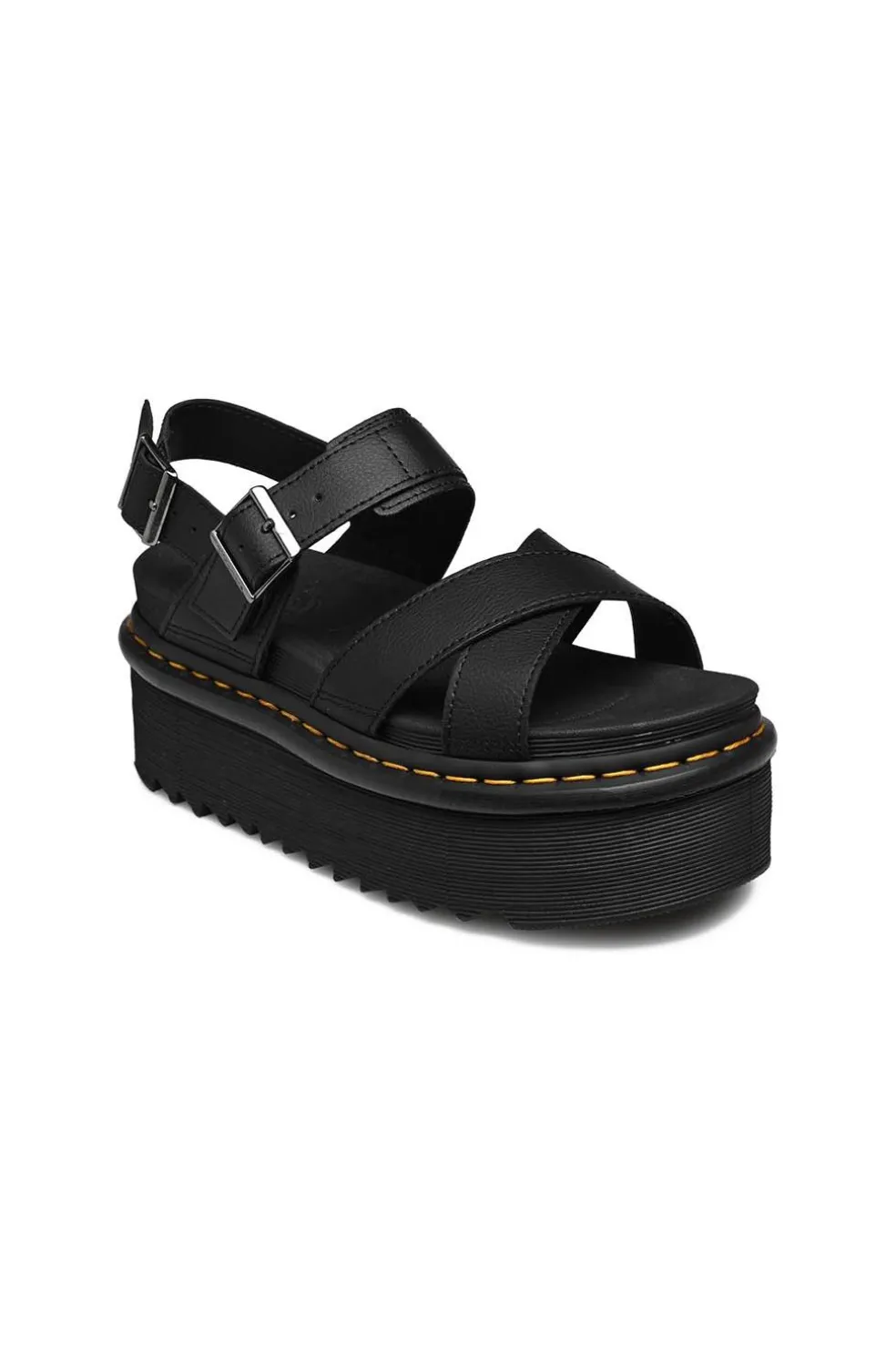 Sandalia Dr. Martens de piel untada con Poliuretano, de acabado mate y muy suave al tacto. Fabricada con empalmillado Goodyear. Cuenta con 7 cm de plataforma.