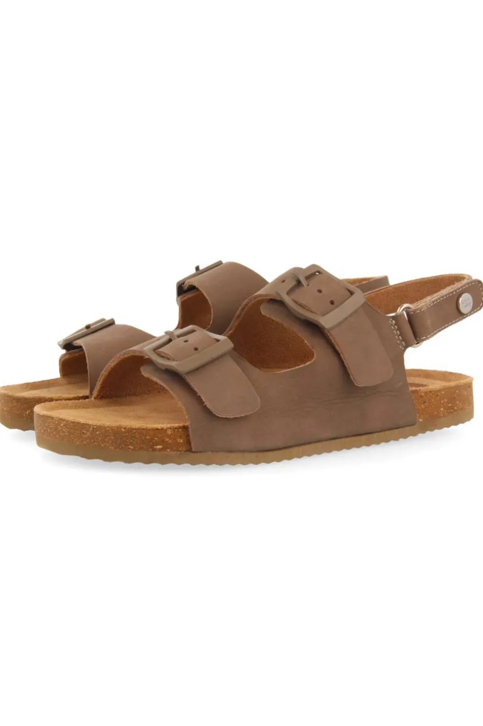 Un modelo que no se querrán quitar en todo el verano. Sandalias tipo Bio de piel color taupe con acabado de nobuck y detalle de hebillas. Cierre ajustable al talón para favorecer el calce y la autonomía de los más peques. Planta de piel acolchada con látex para una mayor amortiguación. Forro de piel. Piso muy flexible.