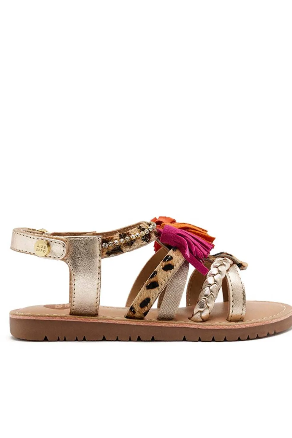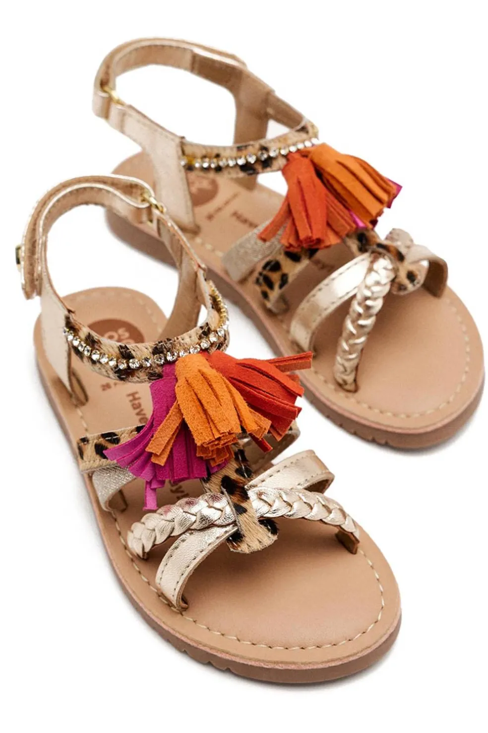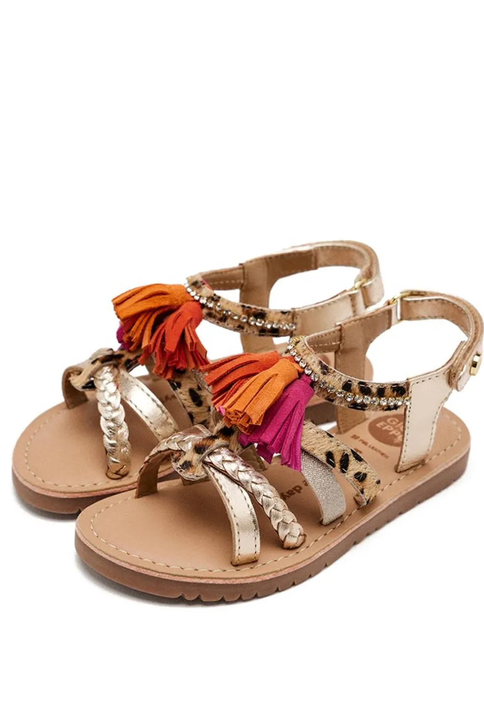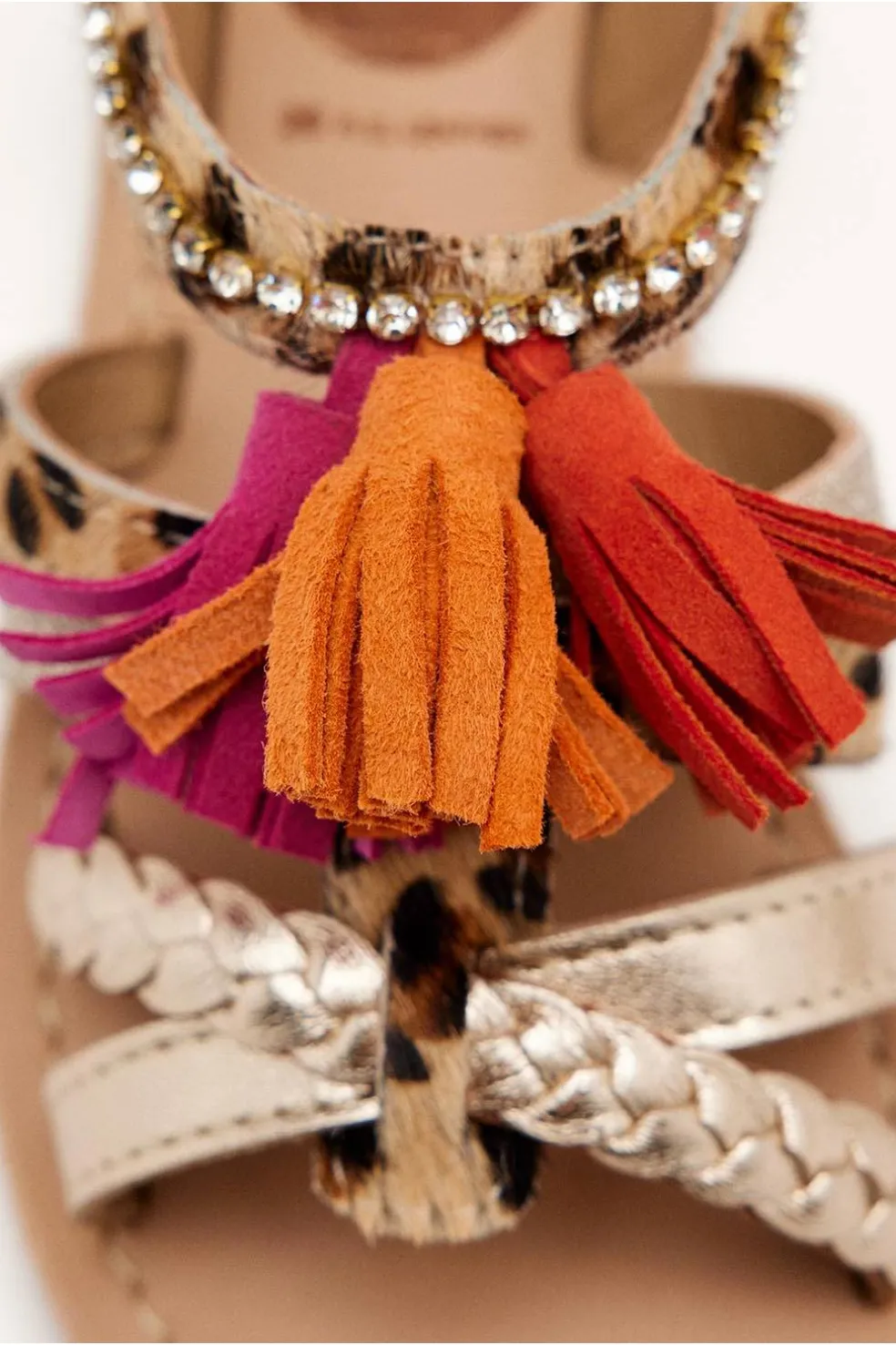 SANDALIAS FLECOS Y LEOPARDO PIEL MEDFIELD. Sandalias metalizadas de piel con estampado animal y flecos. Cuentan con planta acolchada de piel y cierre ajustable en el talón.