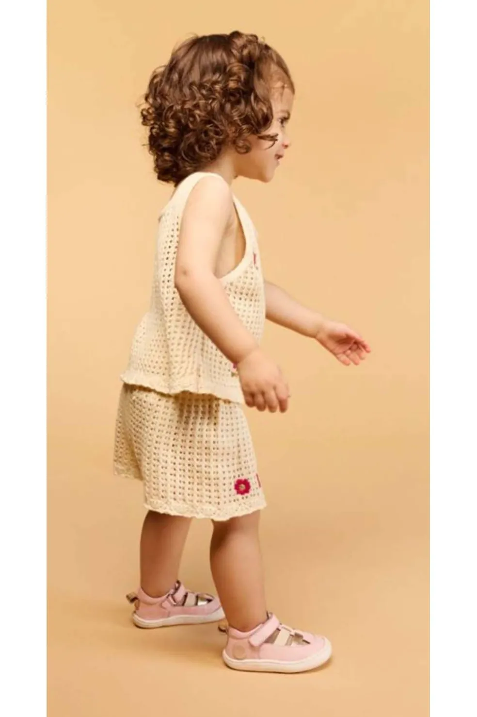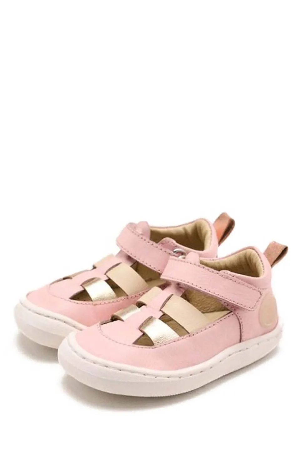 SANDALIAS ROSAS ESTILO CANGREJERAS CON CIERRES AJUSTABLES PARA BEBÉ ODELL. Una nueva línea de calzado que redefinirá la experiencia de sus primeros pasos. Sandalias estilo cangrejeras con cierres ajustables. Disponen de plantilla de piel muy acolchada de látex y piso flexible. El forro y la plantilla están hechos de material transpirable. La nueva línea de calzado que estimula las experiencias sensoriales ya está disponible.