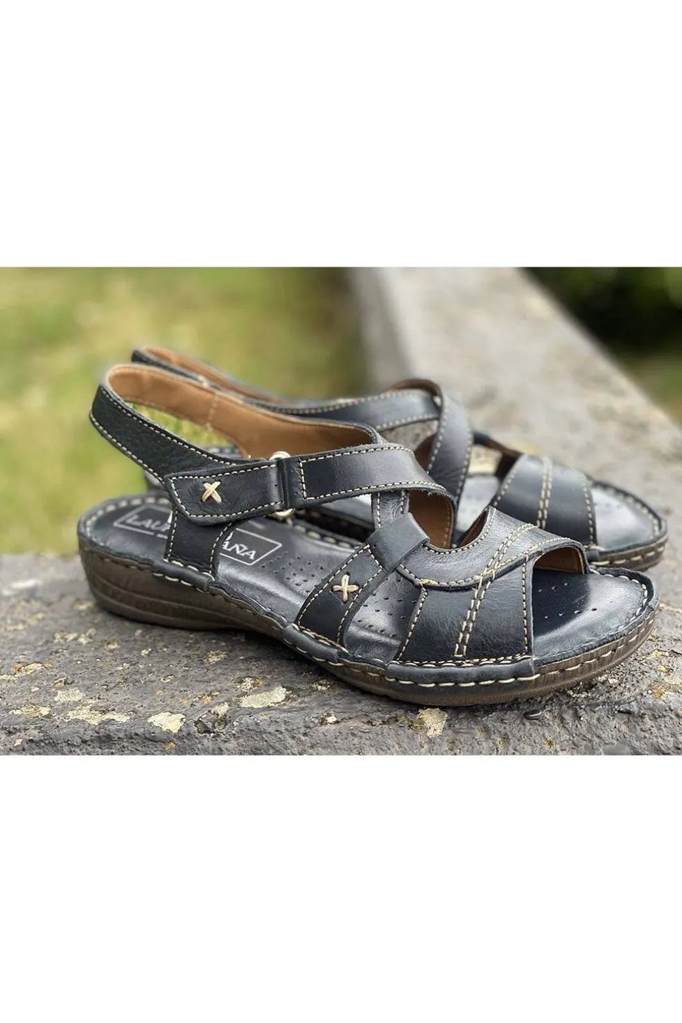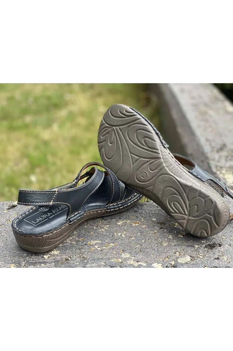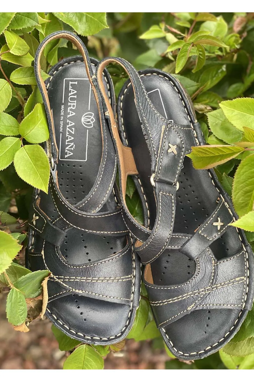 Sandalia plana de inspiracion étnica, unión corte y suela cosido a mano. Confeccionada en piel, con palnta interior de espuma memory foam y forro interior de microfibra transpirable.