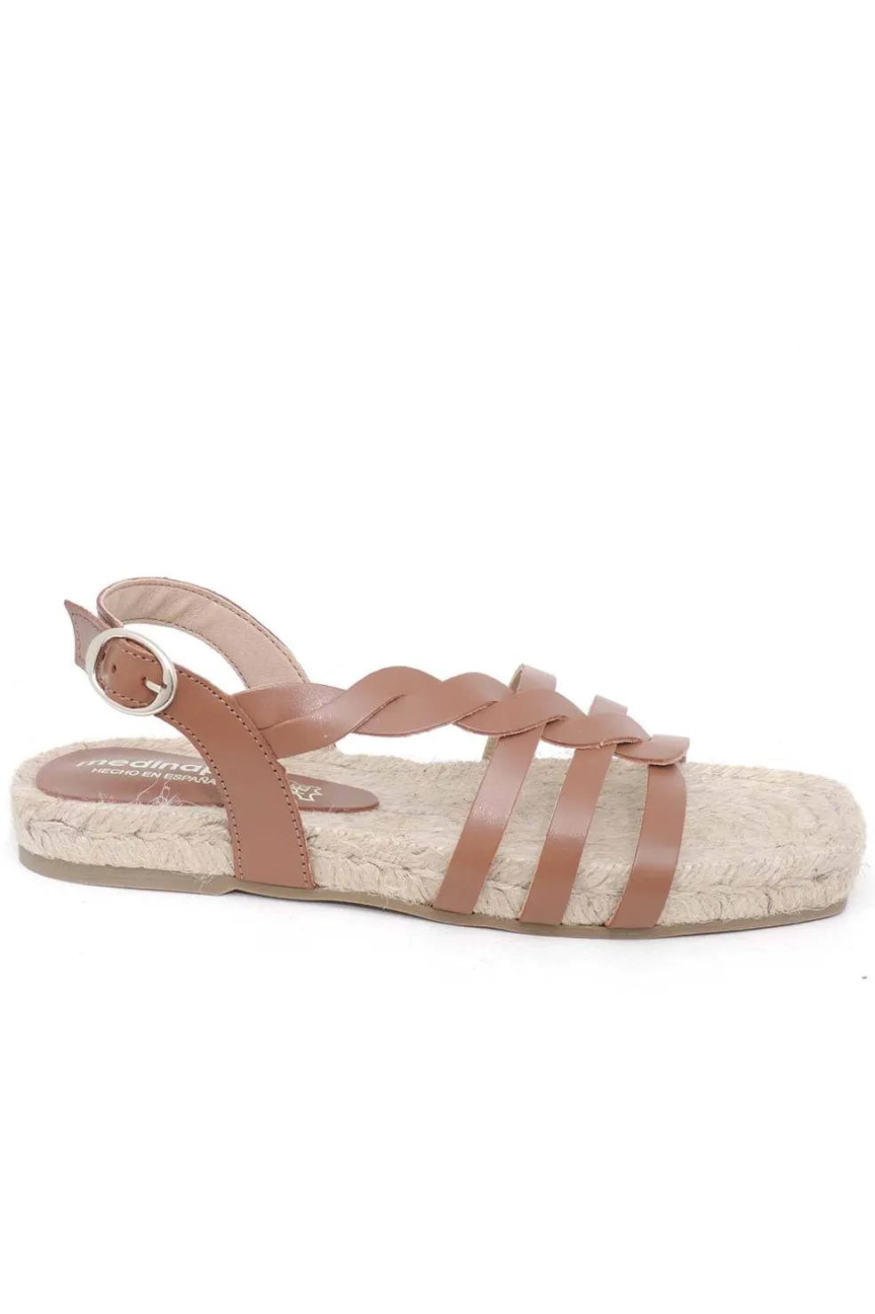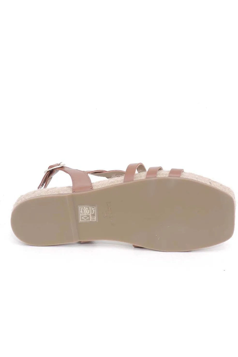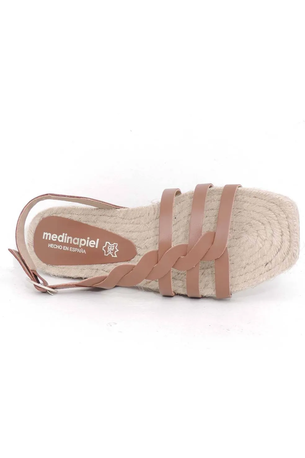 Sandalia de piel con suela de 2 cm en yute y piso de goma.