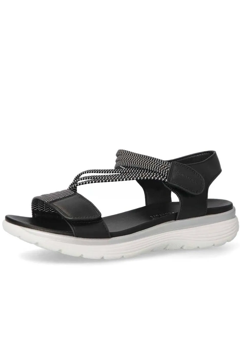 Sandalia cómoda y veraniega, de color negro combinable con todos tus looks, será tu aliada ya que sus características principales son la comodidad y flexibilidad.