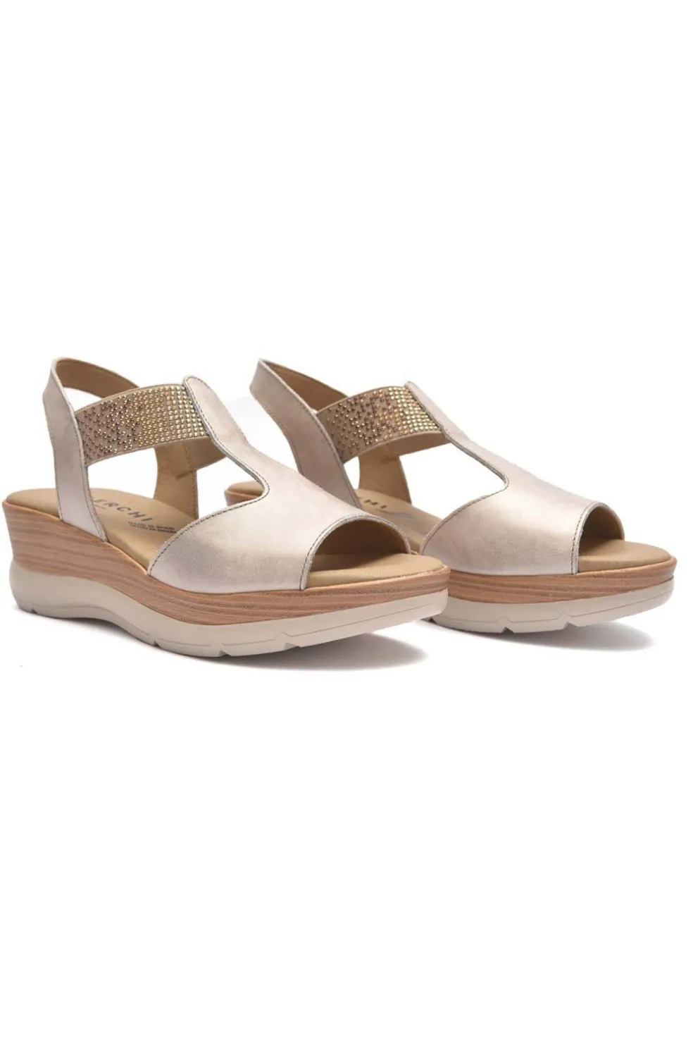 Sandalia de cuña baja de mujer BOTICELI40202, con piel de vacuno, cierre de elásticos y suela de caucho.