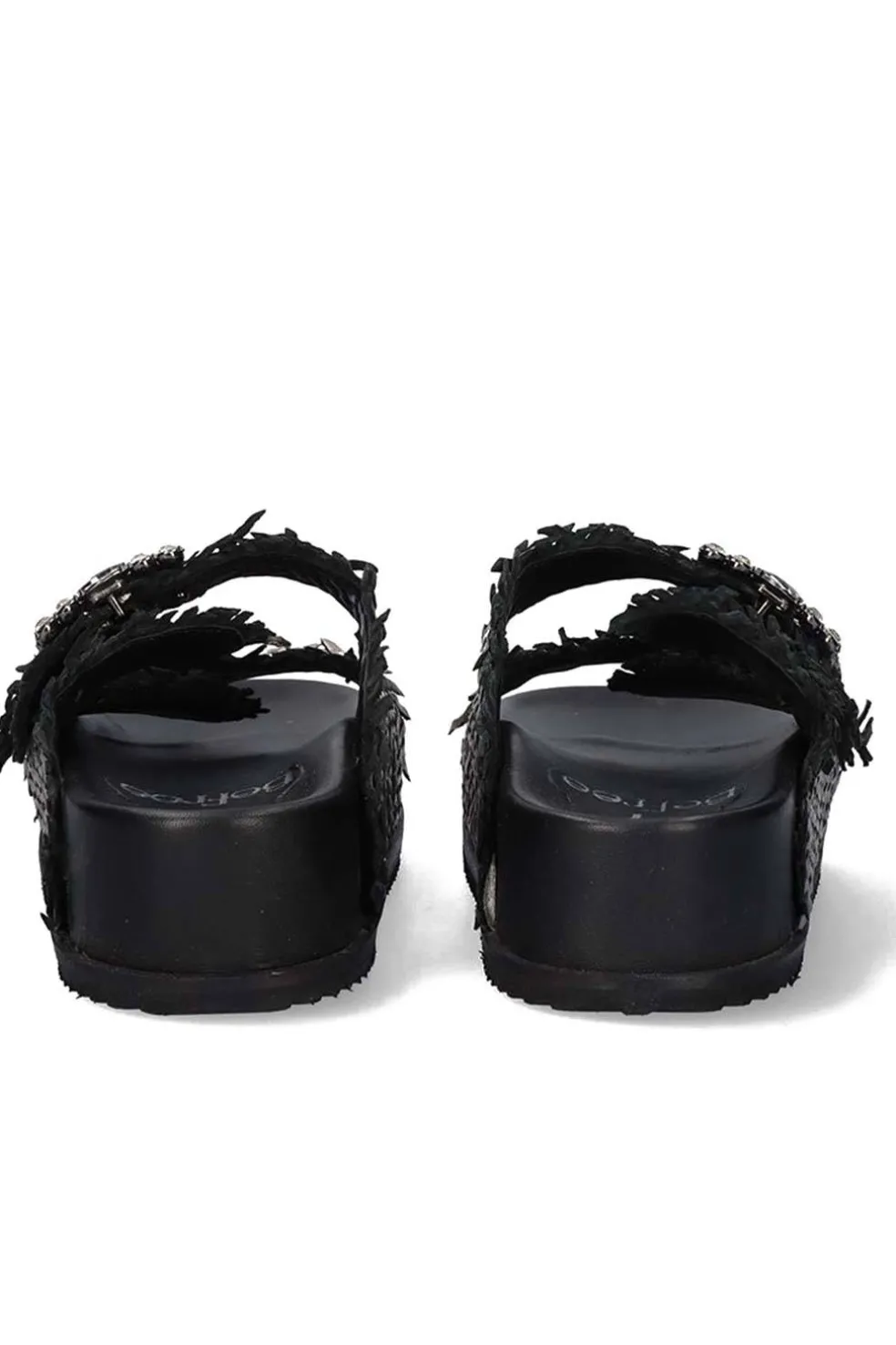 Cómodas y sofisticafas sandalias estilo bio BeFree de color pewter. Tanto el corte como la plantilla de este cautivador modelo estan confeccionados en piel de gran calidad mientras que su gruesa suela de 4 cm es de material sintético. Este diseño tan en tendencia esta temporada se completa con dos grandes hebillas llenas de brillantes.