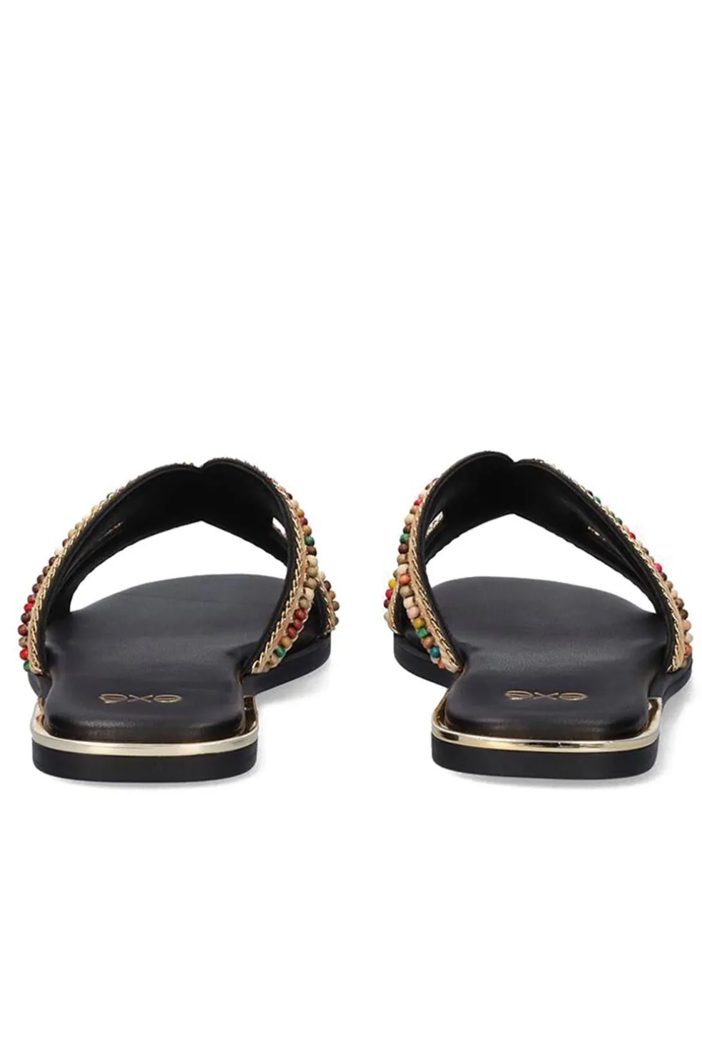 Añade a tu fondo de armario estas preciosas sandalias Exé en color negro. Con su intenso color y todos sus detalles, este modelo será el perfecto para todos tus jeans, faldas y vestidos. Sandalia Exé de color negro. Este modelo cuenta con corte y suela de material sintético, mientras la plantilla es de piel de gran calidad.