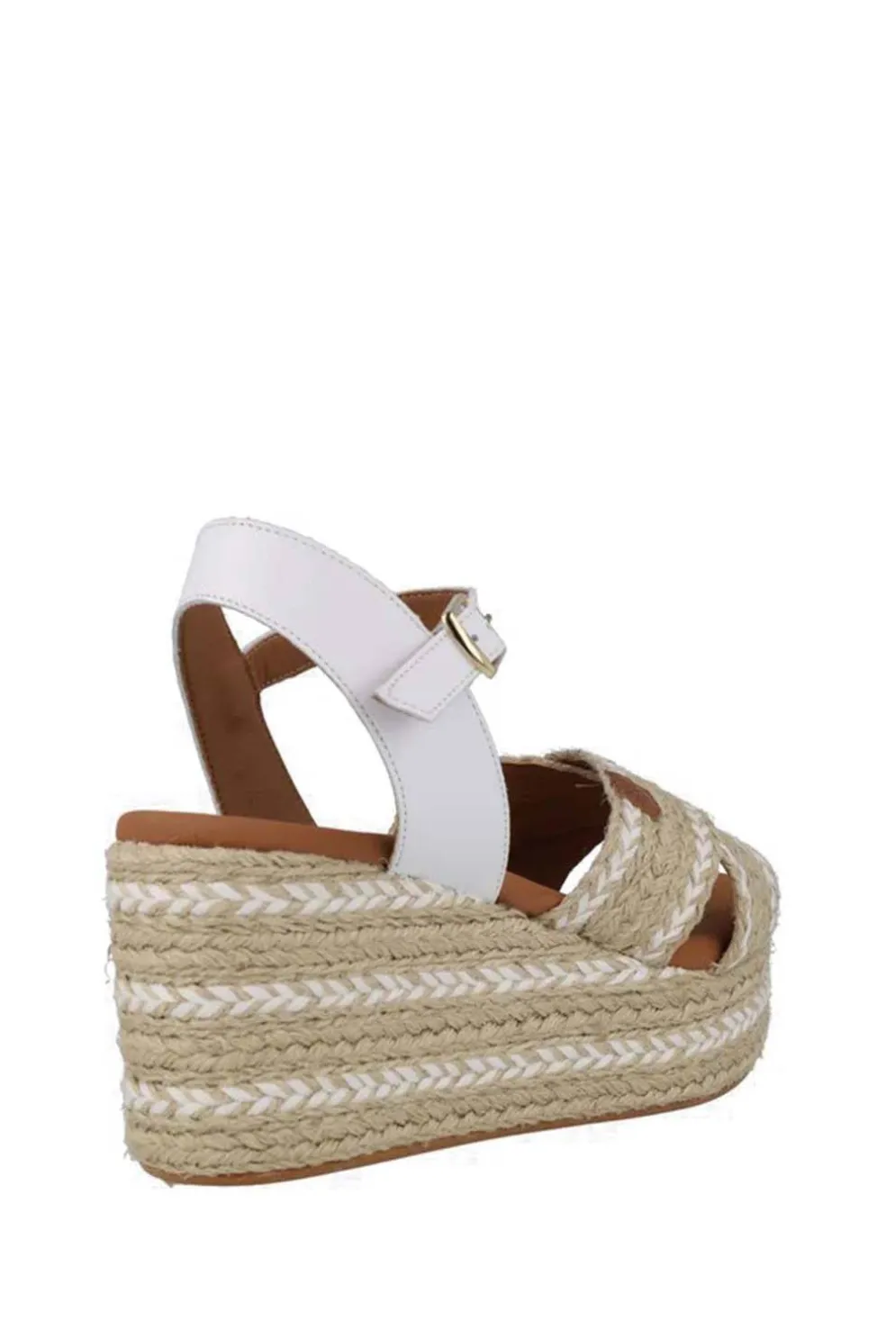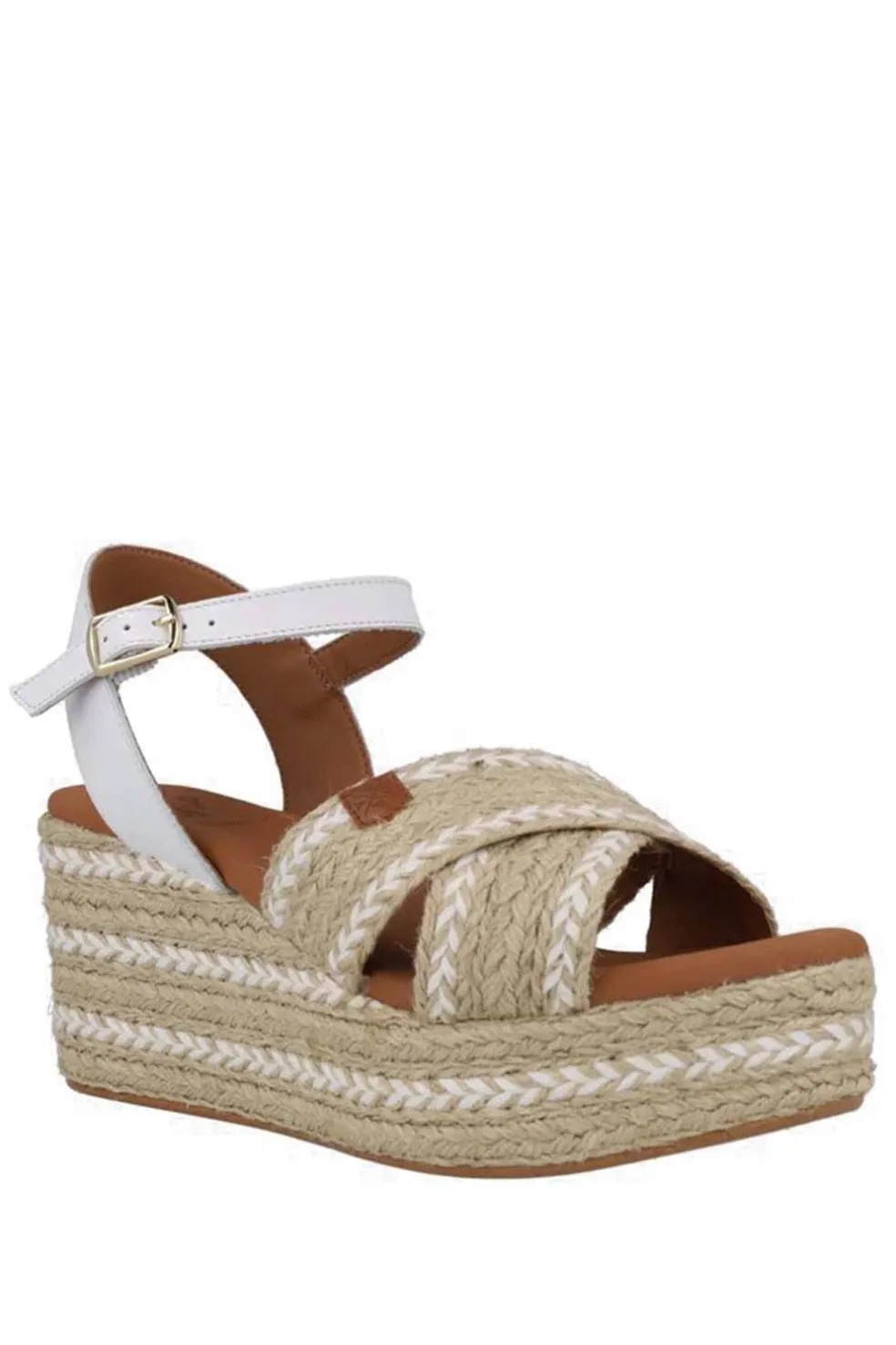 Benijo, combinando la rafia con detalles de su cuña con la piel de su pala cruzada, ¡te encantará para cada día! De media altura, para asegurar comodidad en cada pisada. Altura cuña: 8 cm