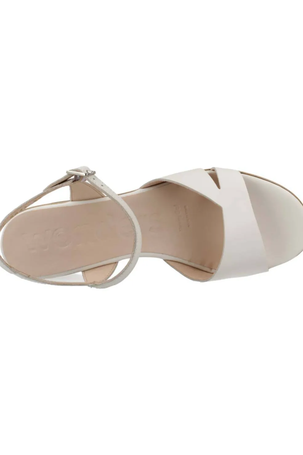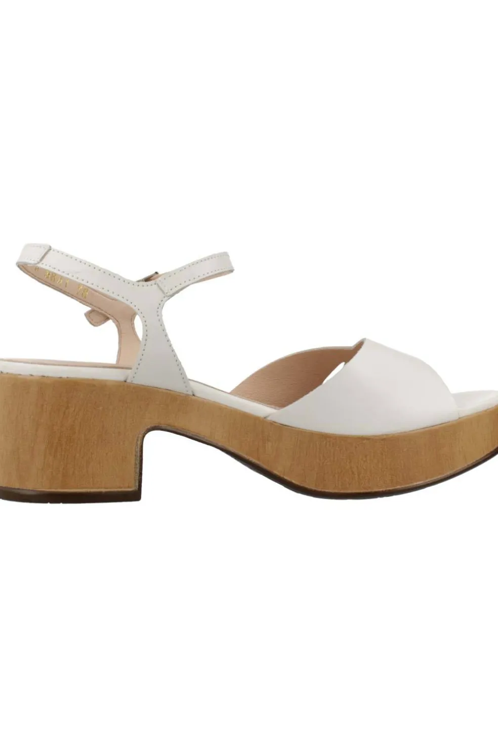 Sandalias en piel lisa con plataforma en color blanco roto. Las sandalias Santander tienen un tacón de 5,5 cms con una tira frontal y otra que rodea el tobillo con una hebilla que aporta al modelo una sujección garantizada. Además, la suela está desarrollada con la tecnología WondersFly™ que aporta una extrema ligereza al modelo.