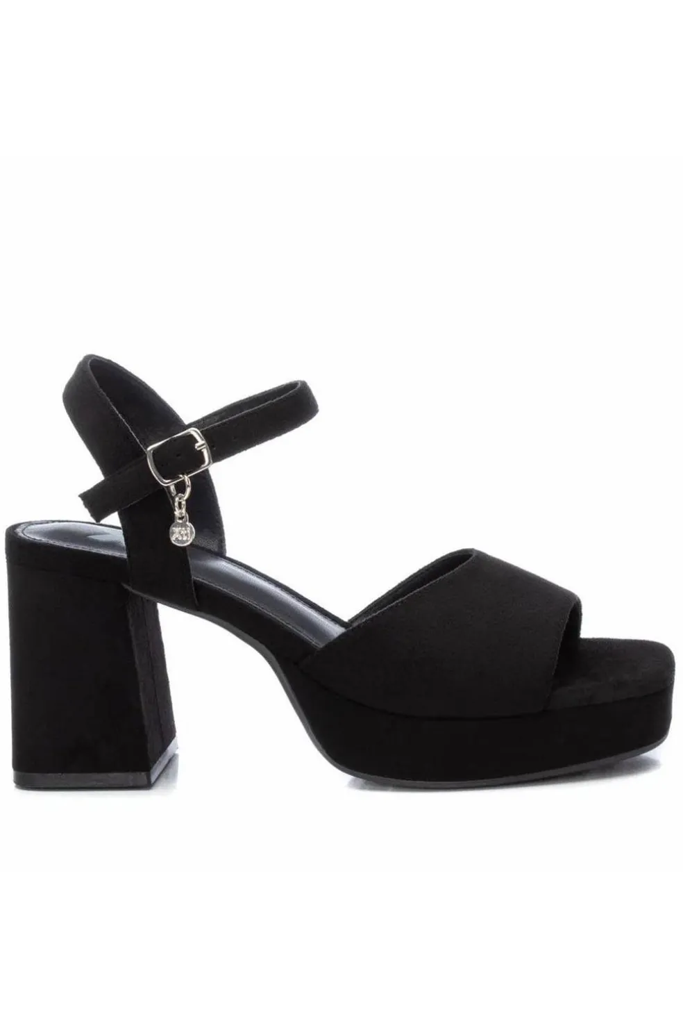 Sandalia de mujer, de la marca Xti. Fabricada en dos acabados: material que imita la piel con acabado metalizado y antelina para los colores mate. Pulsera al tobillo con hebilla regulable.