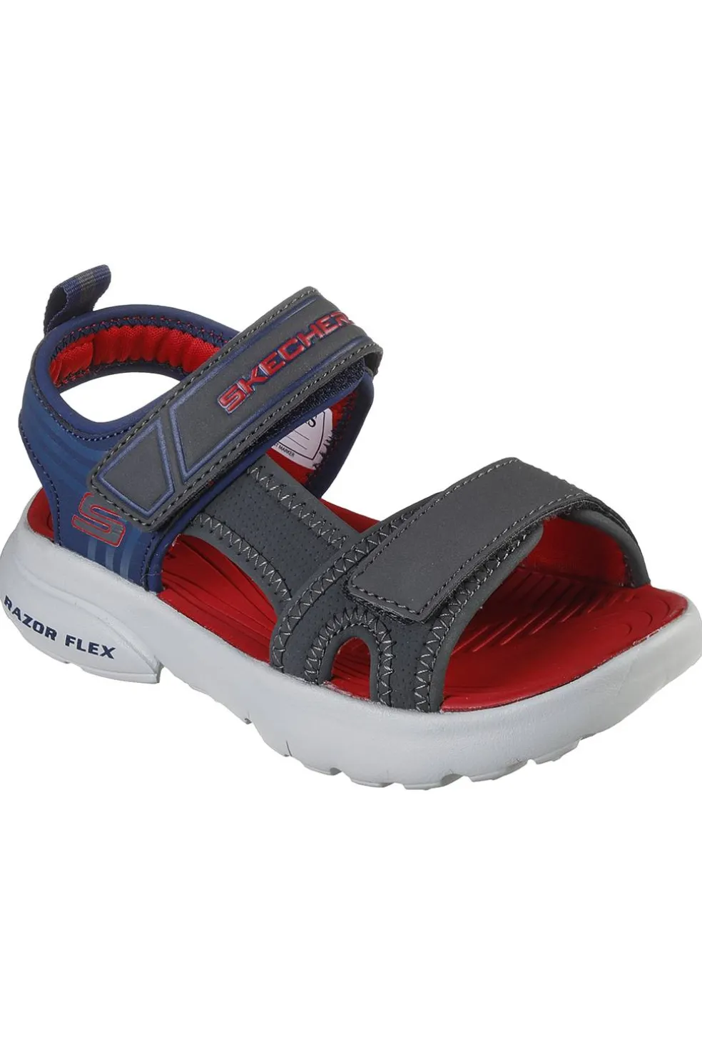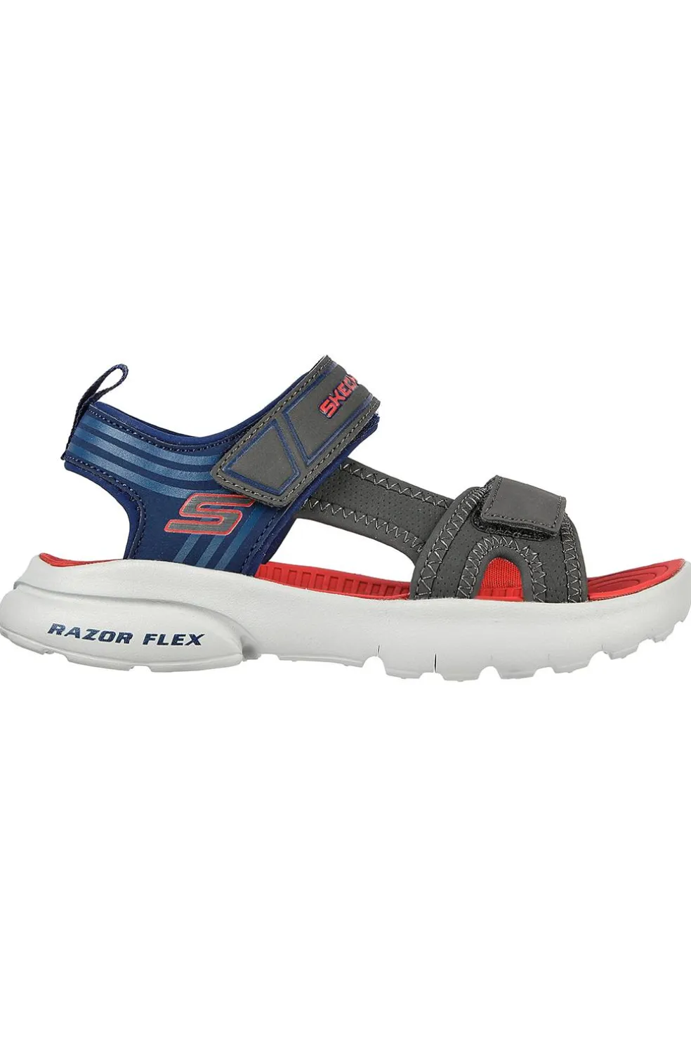 Disfruta del verano con la comodidad y el estilo de las Skechers Razor Splash. Estas sandalias de río ajustables con estilo deportivo presentan una parte superior sintética lisa con detalles de bloques de color, cierres de velcro y una cómoda plantilla con amortiguación.