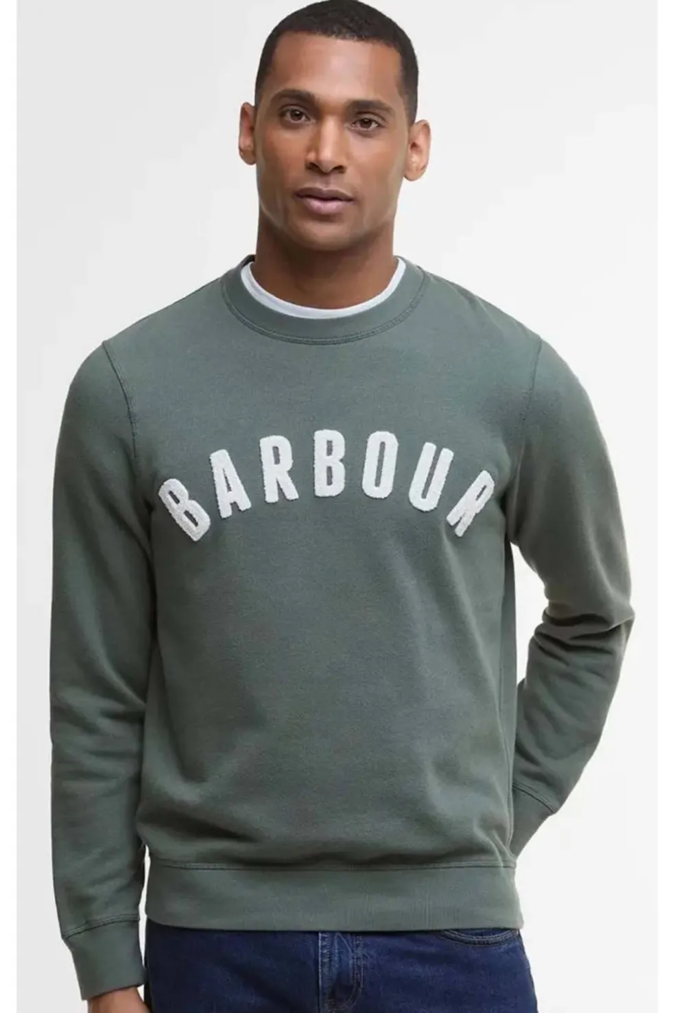 - Marca Barbour en el pecho con bandera lateral de Barbour.