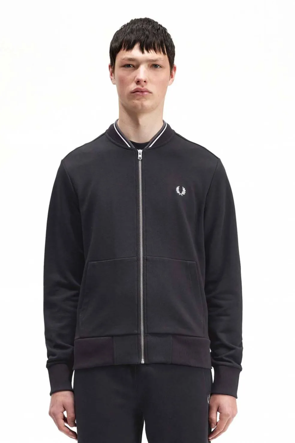 La chaqueta bómber de tenis se utilizaba para calentar en las canchas de los 50; pasó de ser llevada por los campeones de tenis a ser un símbolo de las subculturas británicas. Esta versión, con un corte tradicional, está confeccionada en tejido de sudadera de bouclé de algodón e inspirada en la ropa deportiva de entrenamiento.