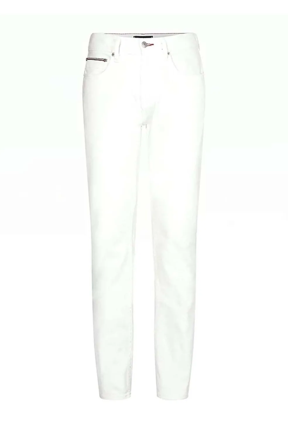 Estos modernos vaqueros de pernera recta se presentan en un blanco luminoso ideal para el verano.