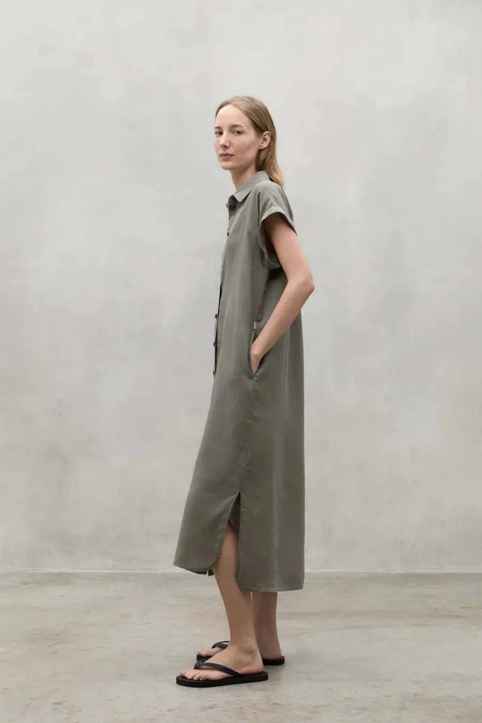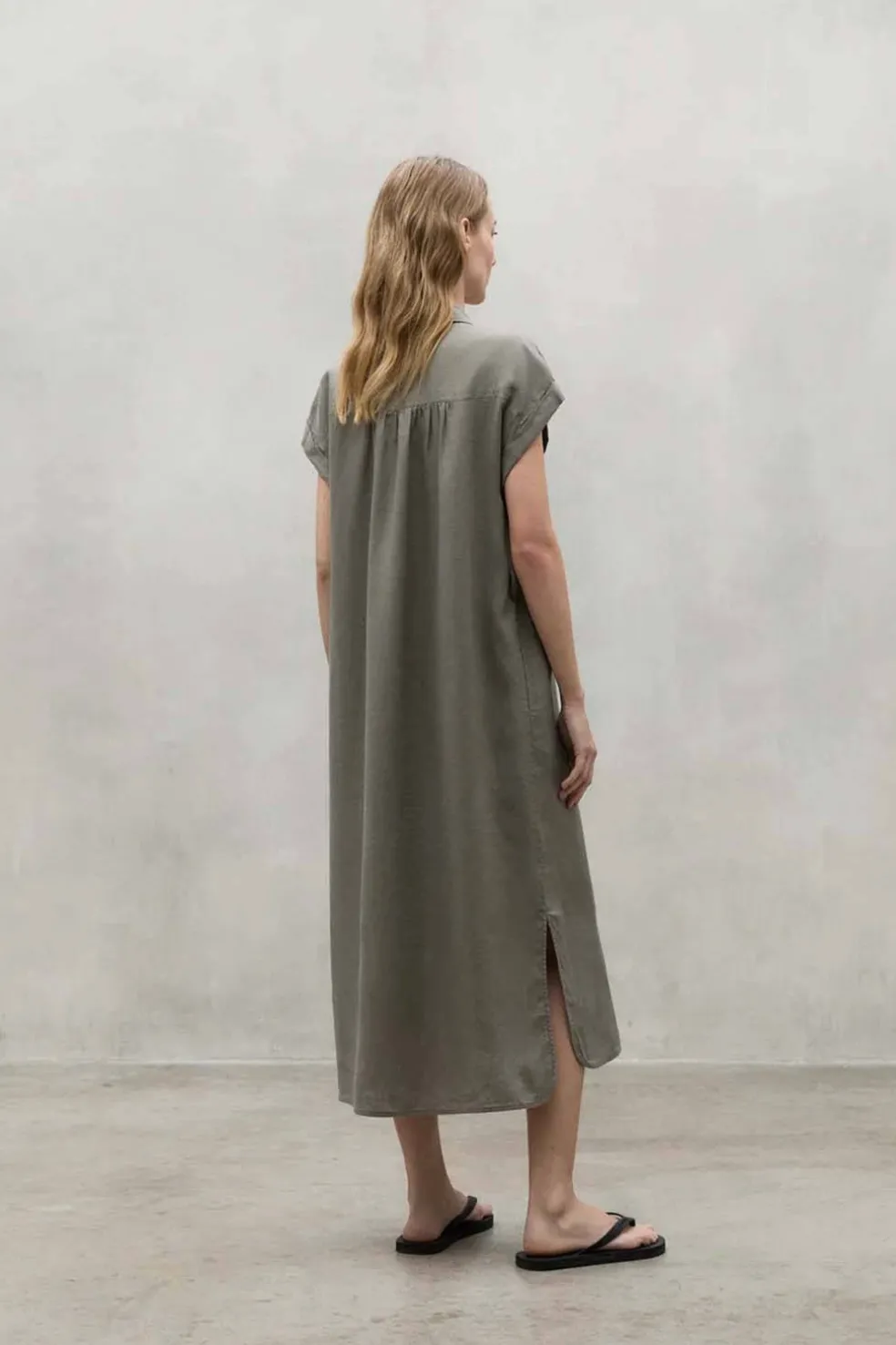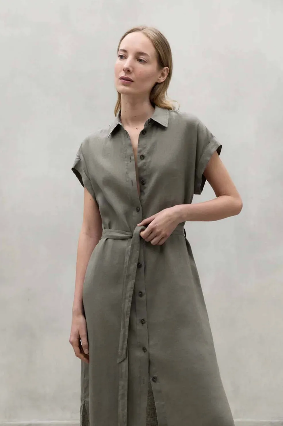 El vestido de lino Amatista tiene cierre de botones y está hecho de 100% lino. Esta fibra es conocida por su alto rendimiento al tener un período de crecimiento corto y ser un material reciclable y biodegradable. Es muy ligero y duradero, por lo que ofrece años de uso gracias a su resistencia. Además, como material de bajo impacto, requiere poca agua en su cultivo y absorbe CO2 durante su crecimiento.