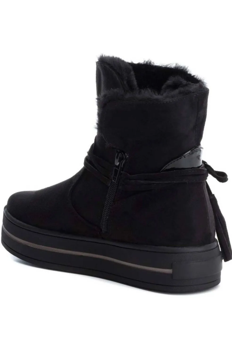Botín de mujer antelina detalle cuerda con flecos.