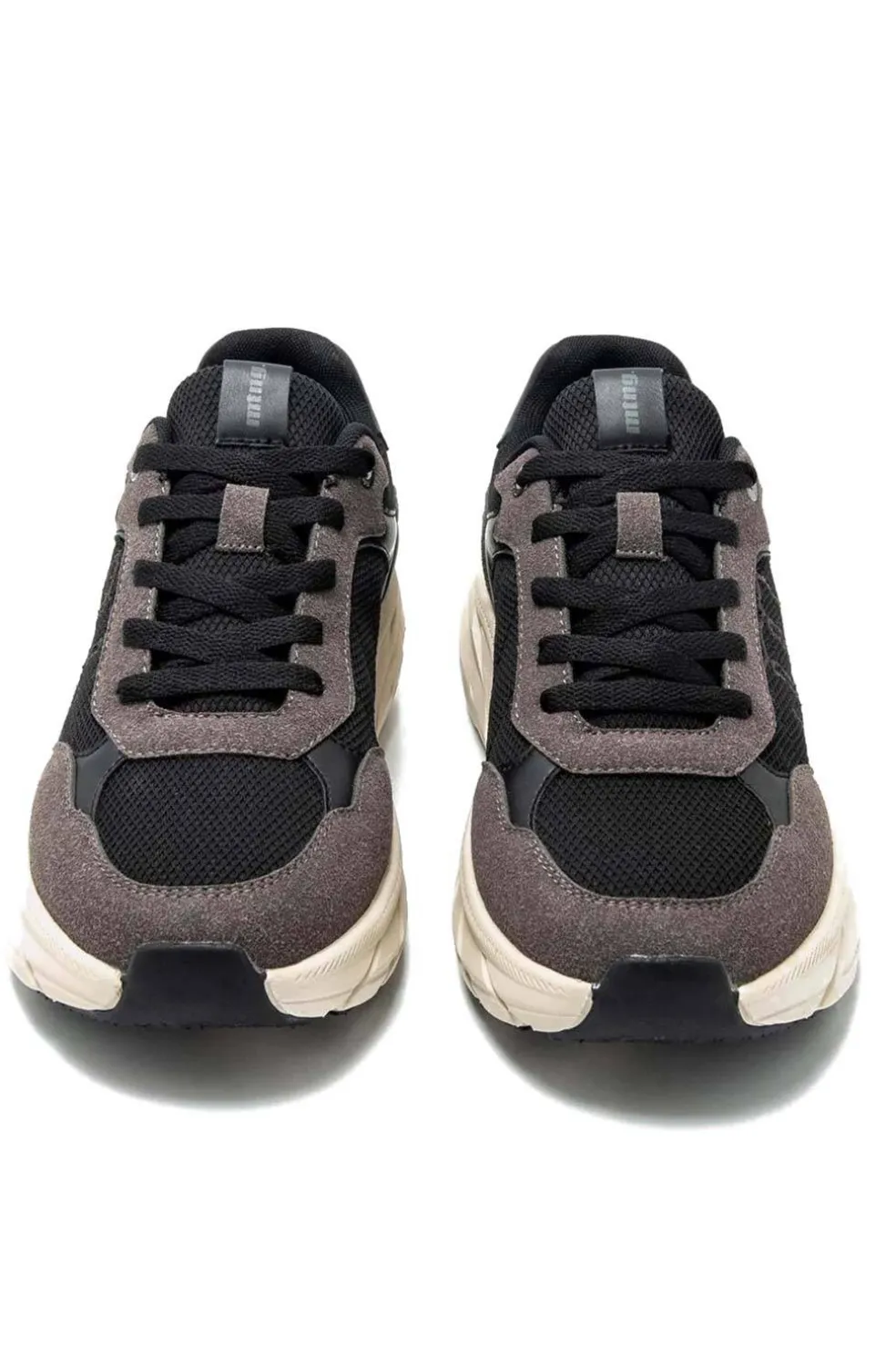 Zapatilla deportiva Sinaka Mustang para chico. Diseñada en color negro, incluye paneles de distinta textura de color gris. Logo de la marca bordado en el lateral. Destaca gracias a su doble suela que amortigua cada pisada con la máxima comodidad. Perfecta para combinar con tus looks diarios.