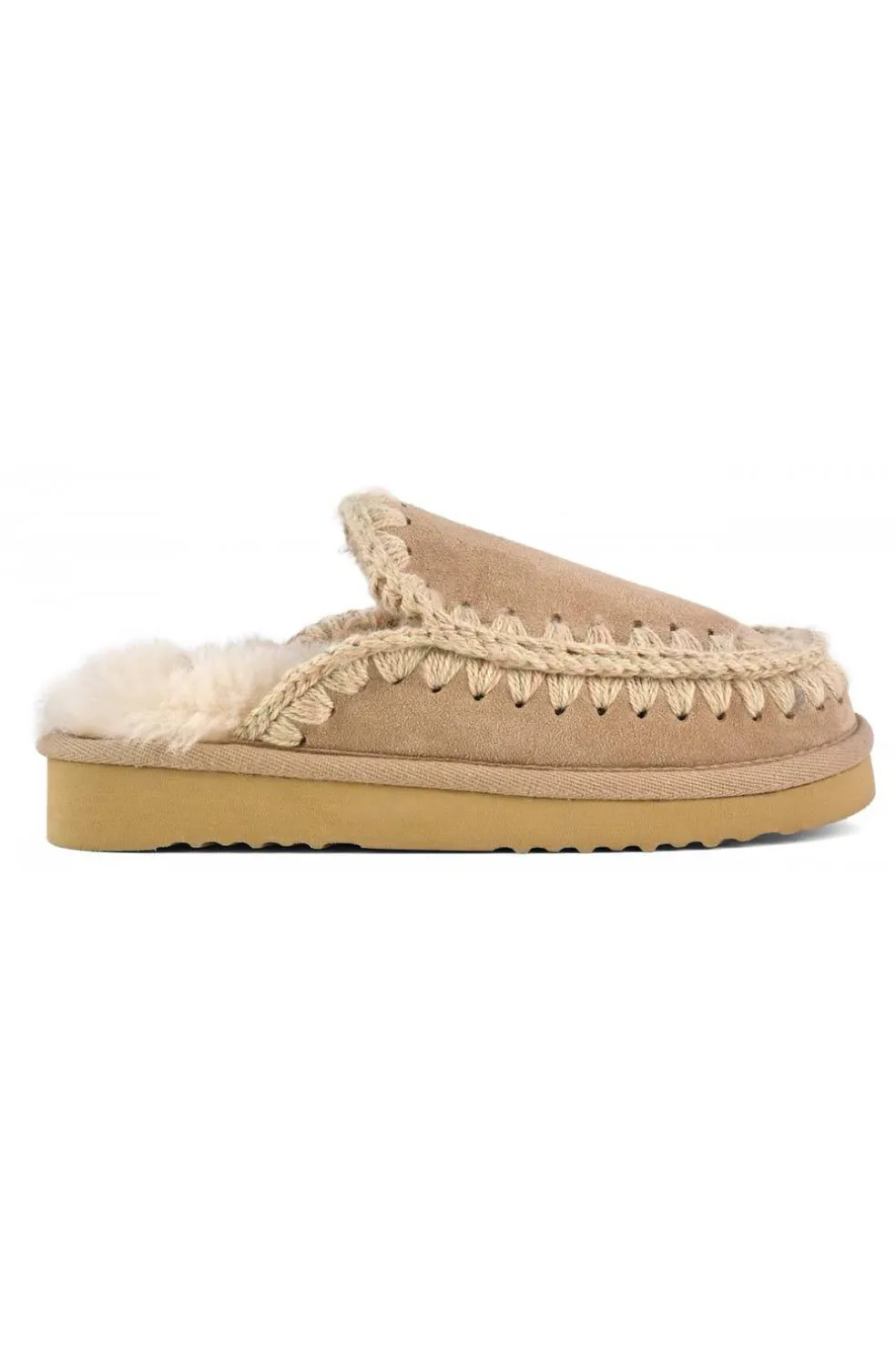 Eskimo slipper con suela de EVA. Fabricadas a mano con piel de oveja genuina de doble cara y las características costuras de lana de la marca mou, este modelo es extremadamente cómodo y cuenta con una suela exterior ligera de EVA que ofrece una gran resistencia.