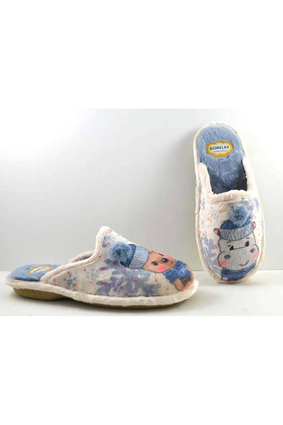 Descubre las divertidas zapatillas de casa para mujer de Biorelax, adornadas con un encantador dibujo de un oso y un rinoceronte con un pompon. Su diseño abierto en el talón permite una fácil puesta, mientras que su suavidad y comodidad te brindan el confort que necesitas para relajarte en casa. Con una suela de goma que asegura un buen agarre, estas zapatillas son perfectas para añadir un toque lúdico y acogedor a tus días.