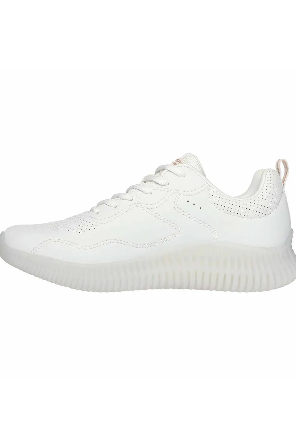 El elegante estilo deportivo y la comodidad flexible unen fuerzas en Skechers BOBS Sport™ Geo. Este modelo vegano con cordones cuenta con una parte superior de knit técnico y tejido sintético con un ribete de ante sintético, y una plantilla con amortiguación Skechers Memory Foam™.