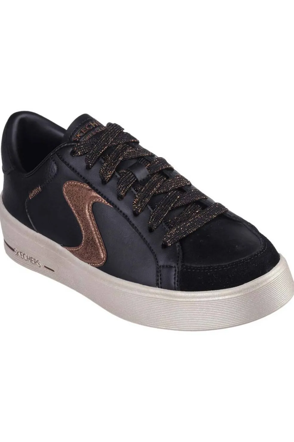 El estilo clásico a la par que moderno se une al confort en Skechers Hiland – Quite Chic. Este modelo con cordones cuenta con una parte superior de duraleather con un ribete metalizado en la parte superior, además de una plantilla Skechers Air-Cooled Memory Foam® con amortiguación.