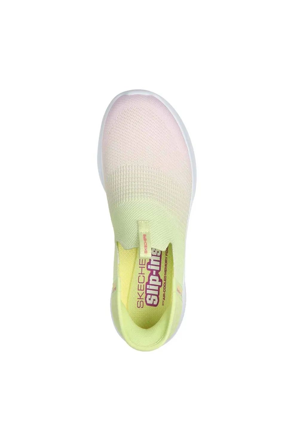 No tendrás que usar las manos para ponerte el modelo deportivo Skechers Hands Free Slip-ins®: Ultra Flex 3.0 – Beauty Blend. Este modelo vegano sin cordones, que incorpora nuestra tecnología exclusiva Heel Pillow™ para mantener el pie en su lugar, cuenta con una parte superior de tejido knit técnico Stretch Fit® degradado, una plantilla Skechers Air-Cooled Memory Foam® con amortiguación y una media suela ligera y superflexible.