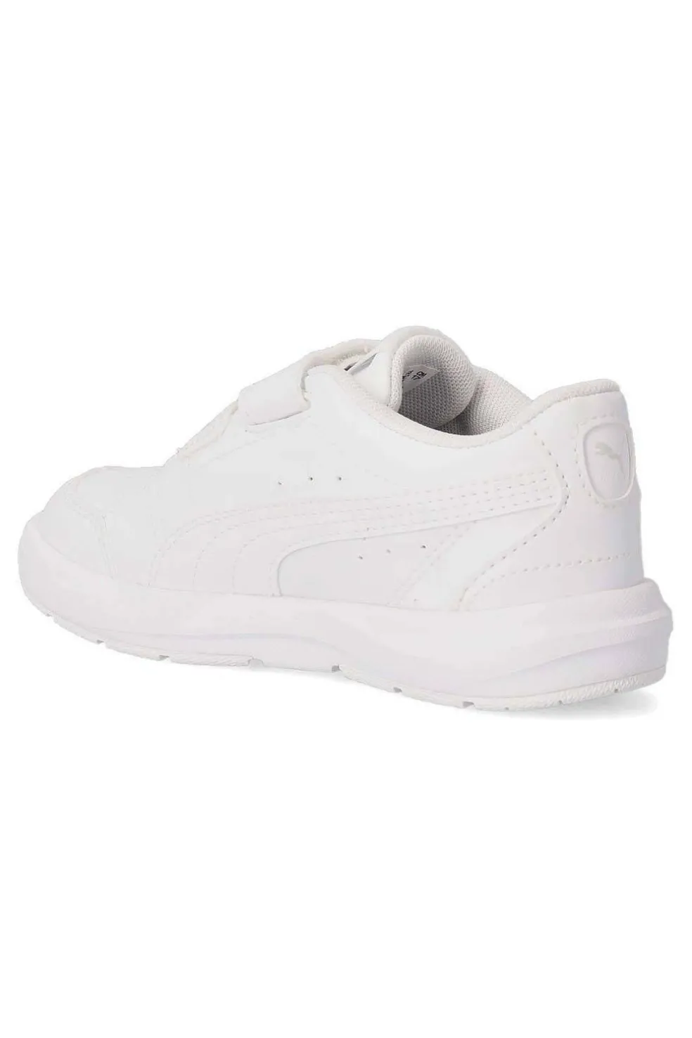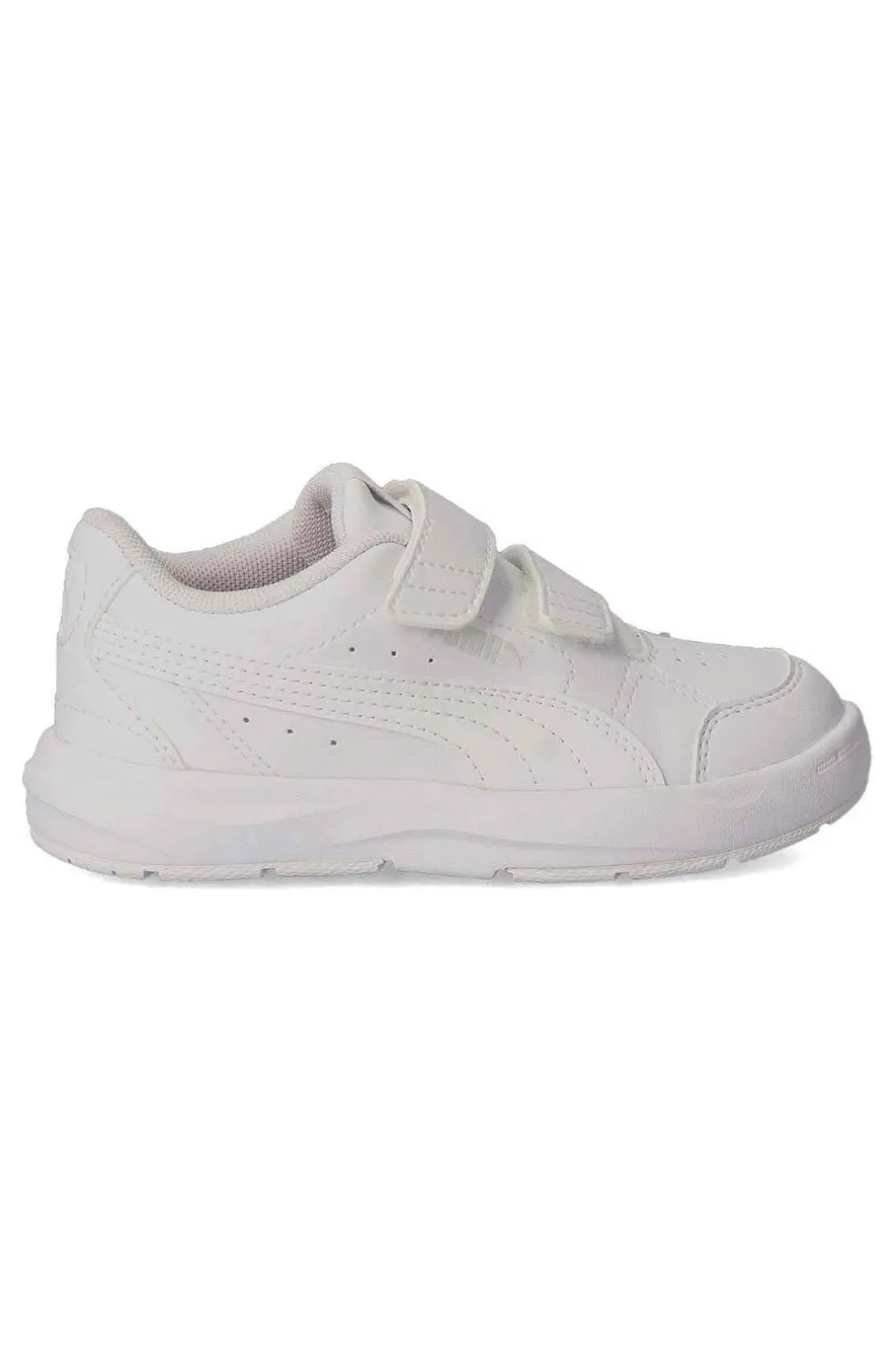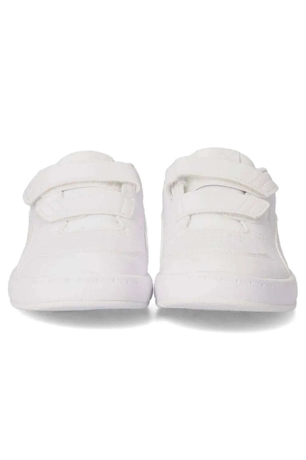 Zapatilla deportiva estilo casual. Cierre de velcros. Sneakers fabricado en piel sintética con suela de goma. Plantilla acolchada SoftFoam. Color blanco. Deportiva perfecta para actividades diarias y uniformes colegiales. PUMA Evole Court.