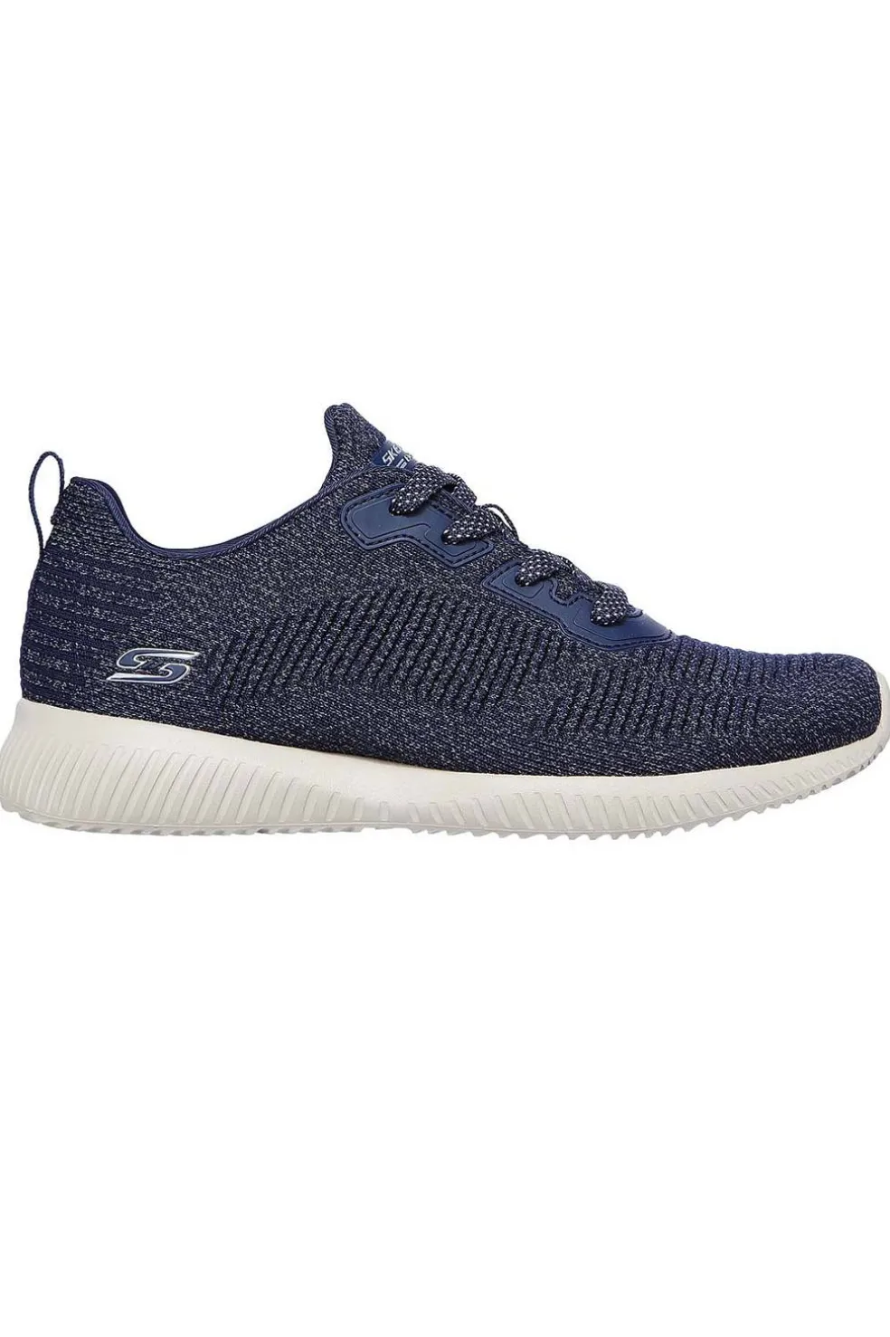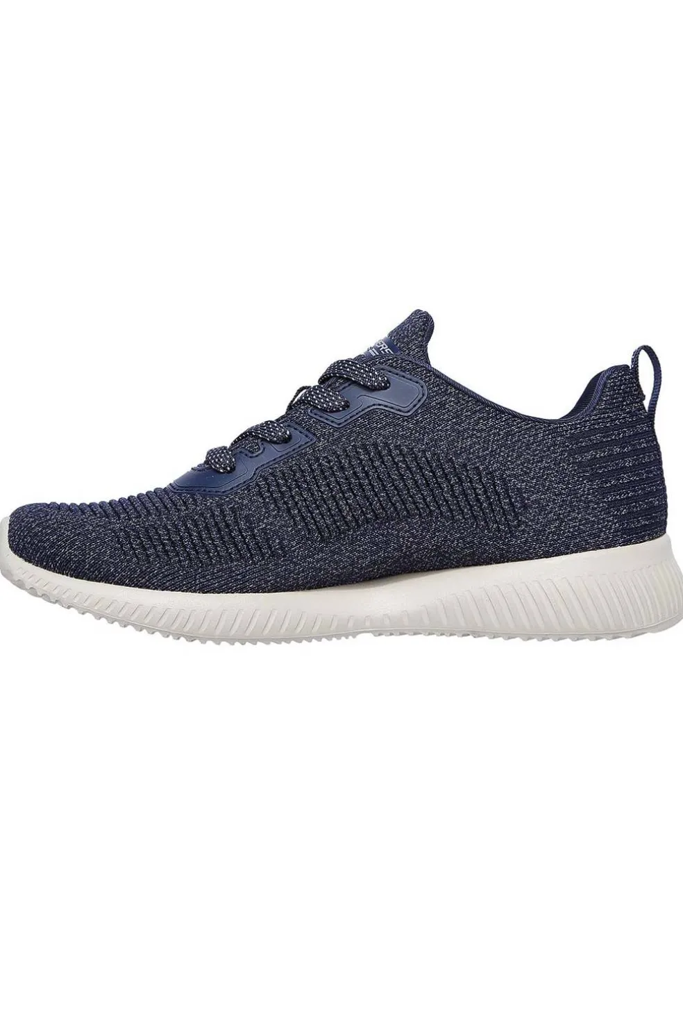 Déjate ver con un estilo llamativo y el confort deportivo de BOBS from Skechers™ BOBS Sport Squad – Ghost Star. Esta moderna zapatilla con cordones presenta una parte superior de knit especialmente diseñado con acabado reflectante, capas de tejido sintético y plantilla con amortiguación SKECHERS Memory Foam.