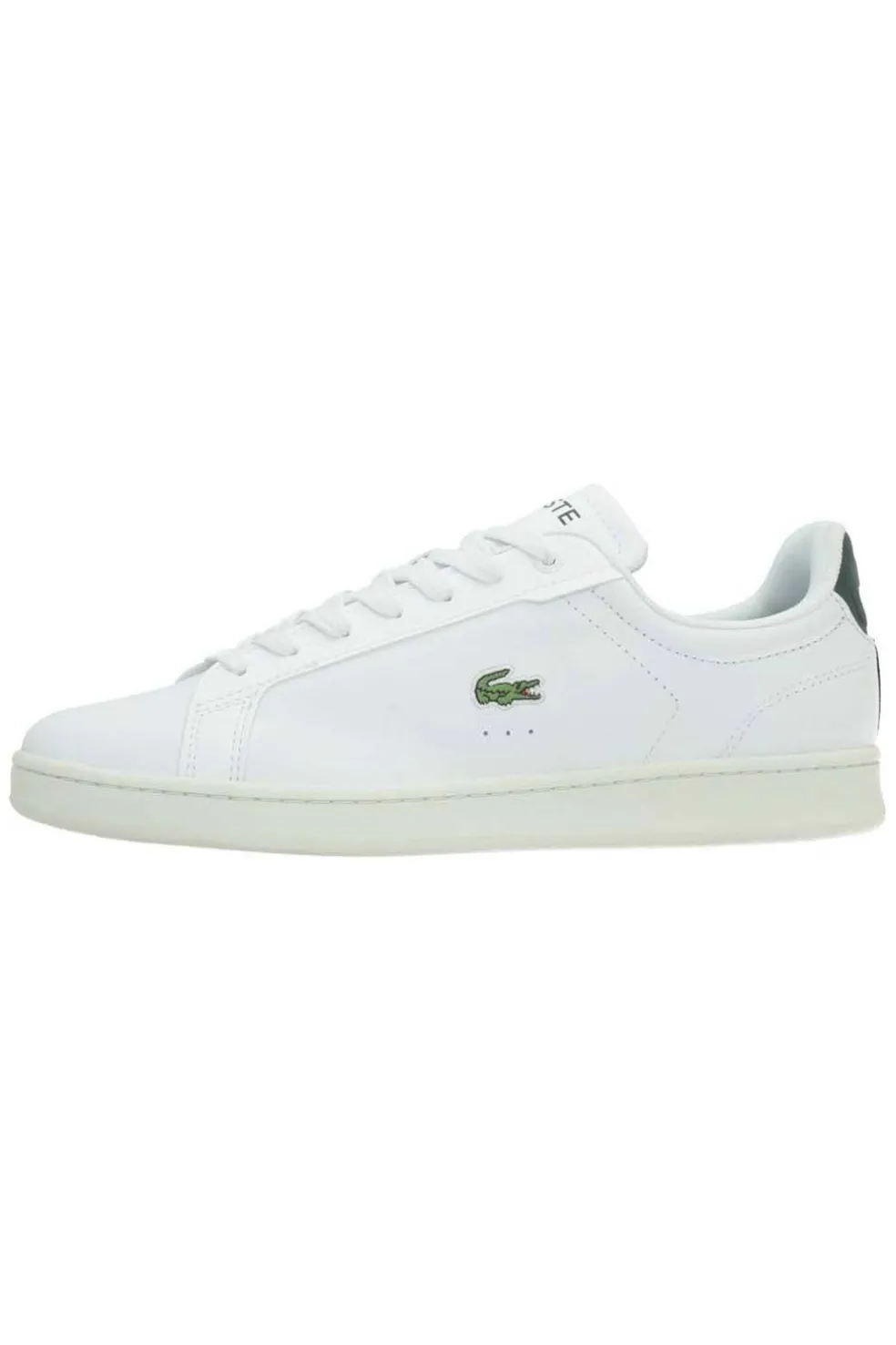Realza tu estilo urbano con el par de sneakers Carnaby Pro de Lacoste. Presentan una caña de piel blanca que envuelve suavemente tus pies. El refuerzo verde del talón añade un toque de color a este emblemático par.