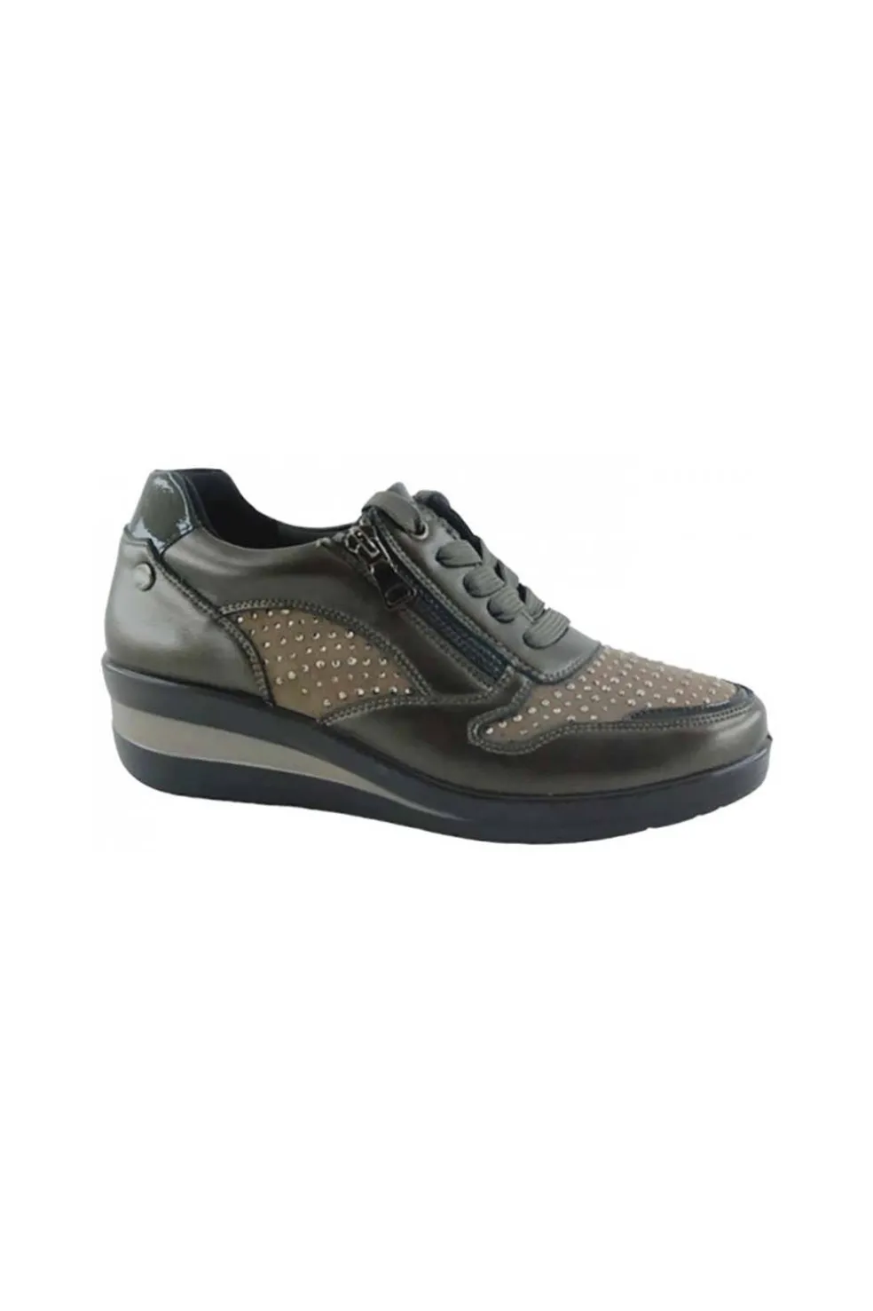 Zapatos con cremallera cómodos Amarpies AMD25334 para mujer en color taupe. Características: Cierre con cremallera, cuña 5 cm, zapato de estilo casual, suela de goma, exterior textil y sintético, forro interior textil y plantilla extraíble.