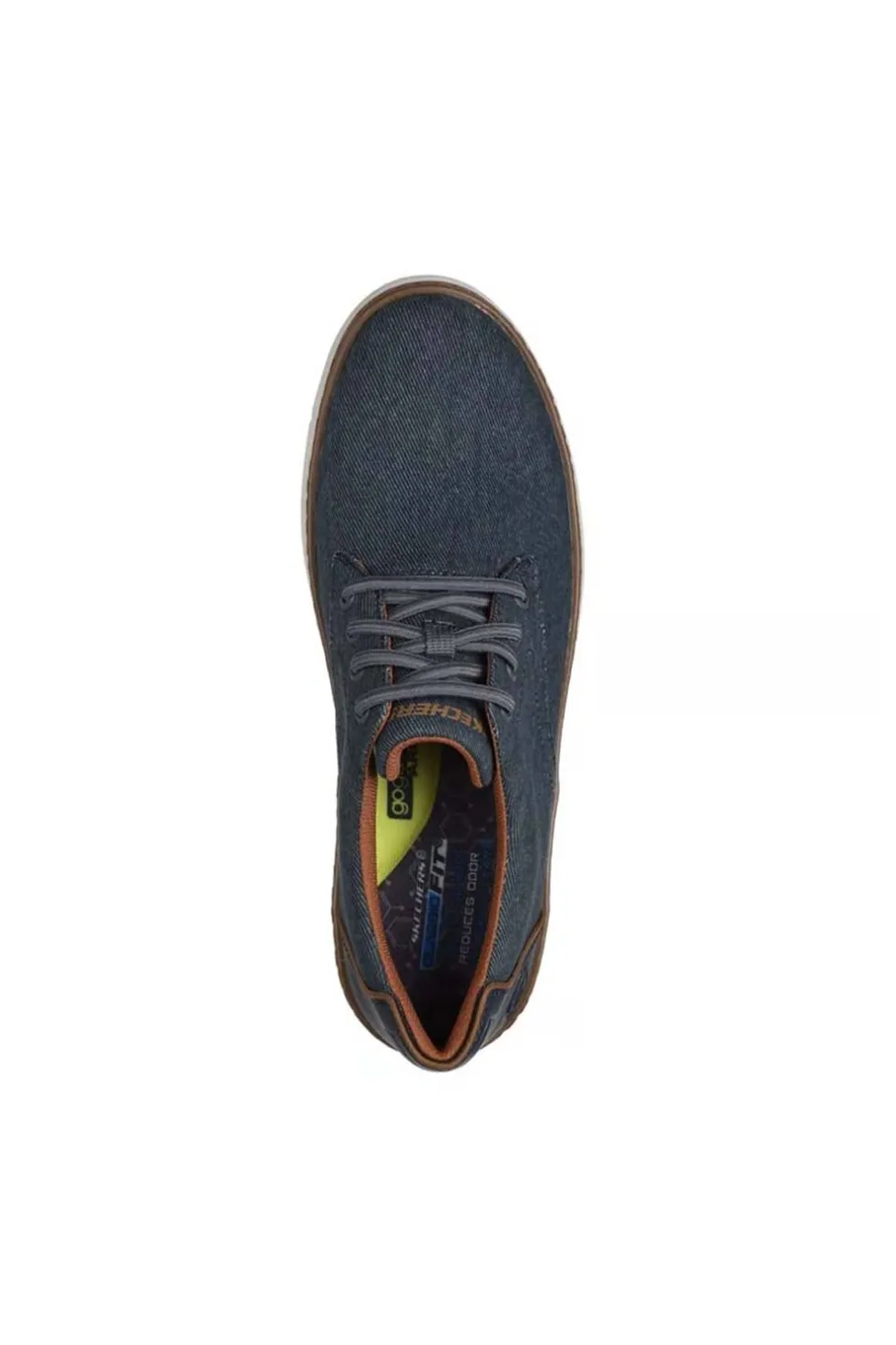 El estilo clásico y la comodidad te acompañan donde quieras gracias a Skechers Hyland – Ratner. Este modelo con cordones decorativos cuenta con una parte superior de lona con un ajuste Classic Fit™, una plantilla Skechers Air-Cooled Memory Foam® con infusión de carbón neutralizador de olores y la amortiguación Skechers Goga Mat Arch™ de Skechers para mayor sujeción.
